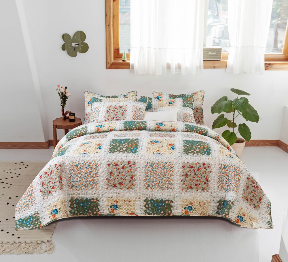 (总)跨境专供 2025年绗缝被四季通用床可水洗床盖夹棉绗缝床盖,静夜花开
