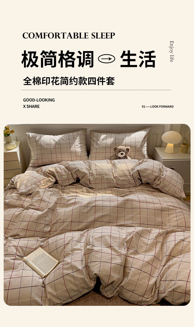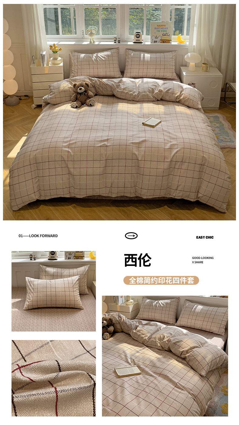捌月 2025新款13372喷气全棉四件套-简约风系列 西伦