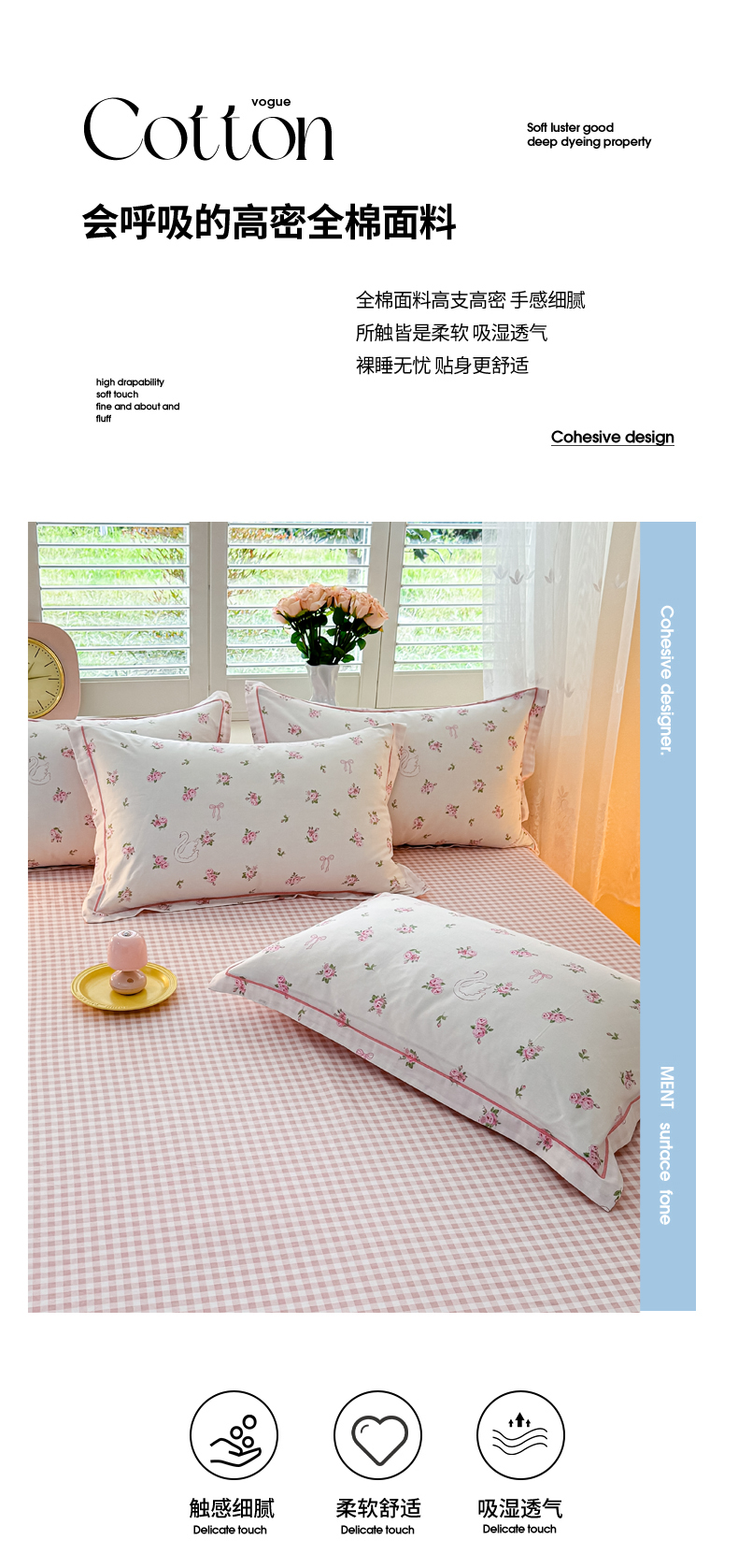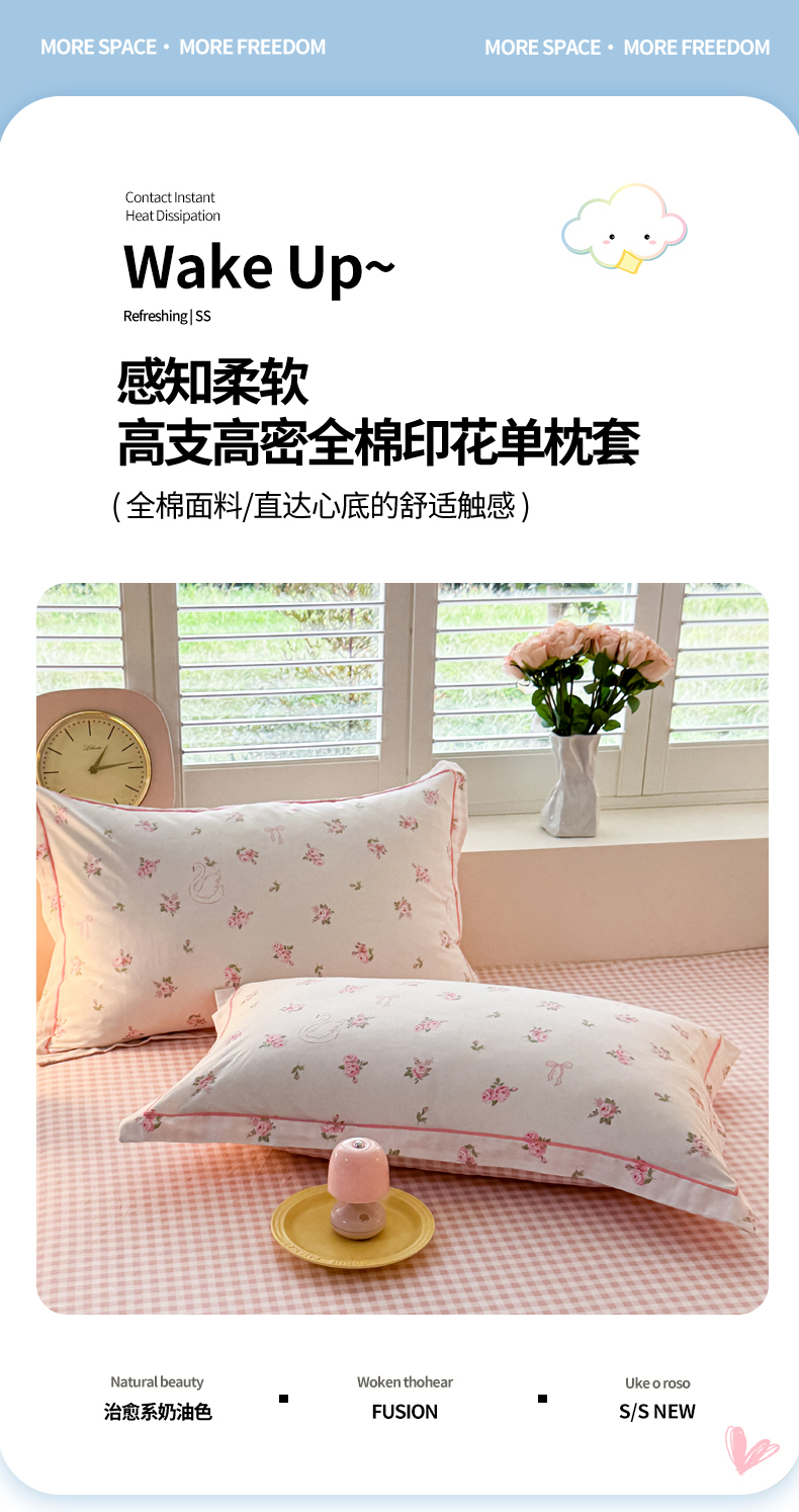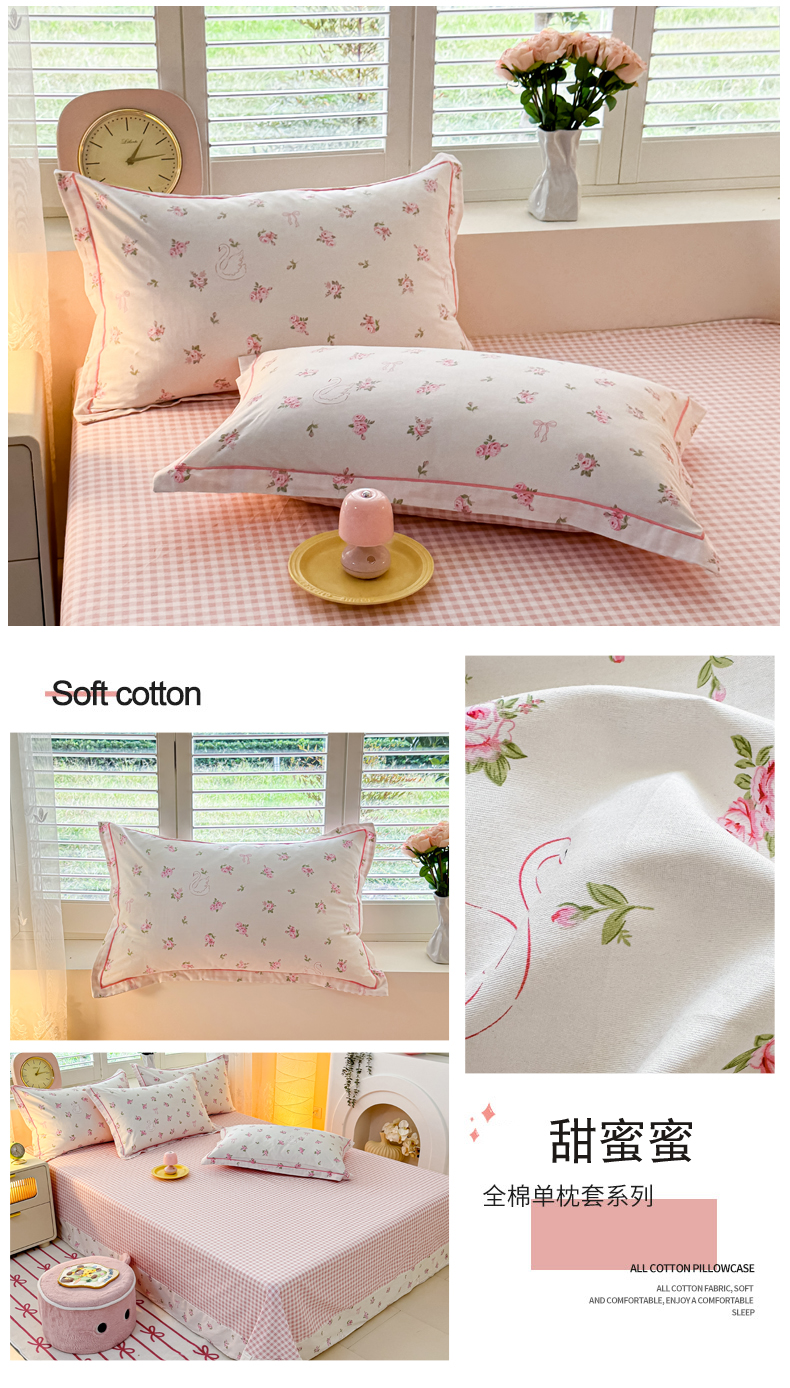商品名称:洺兰家居 2025年新款全棉A类全喷气印花小清新单枕套 甜蜜蜜