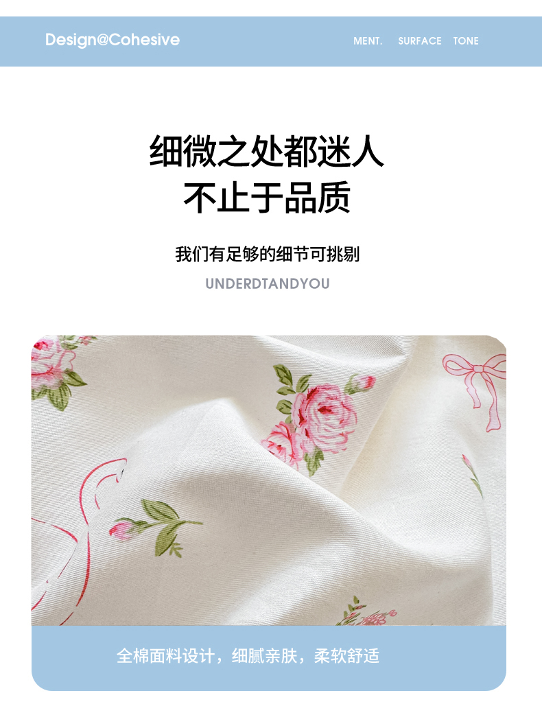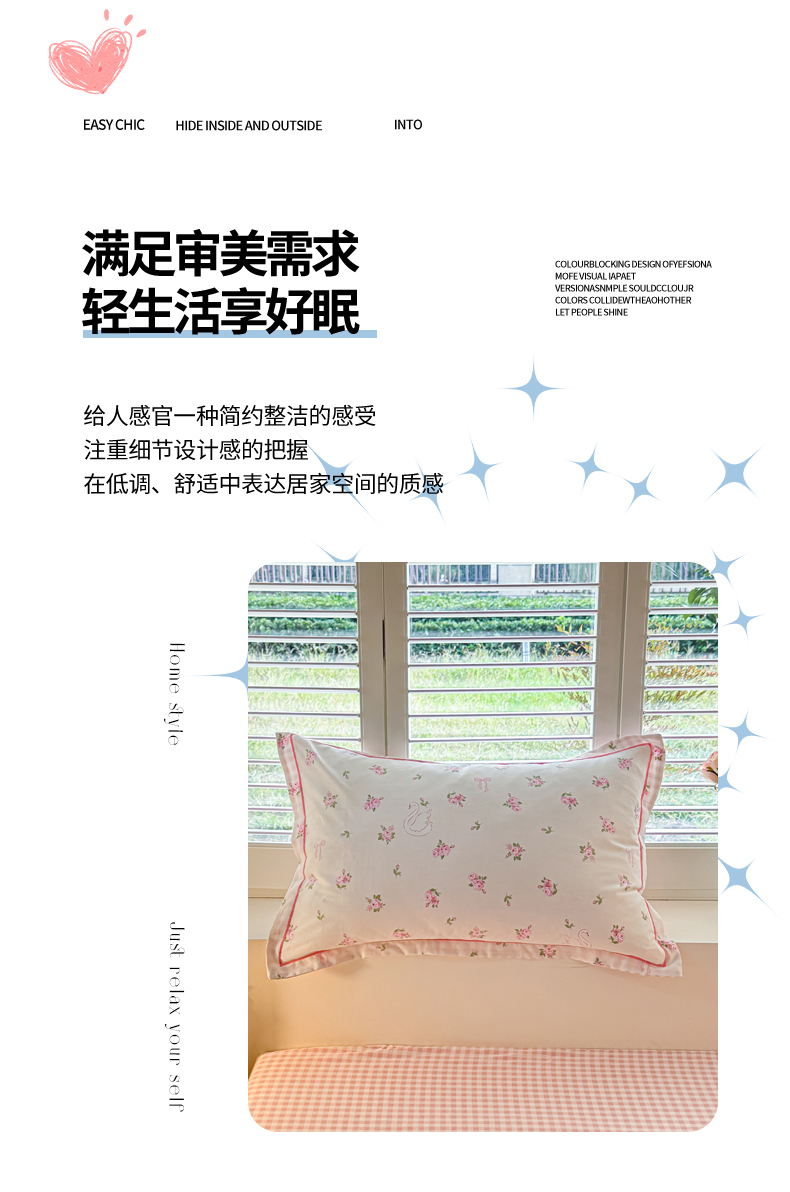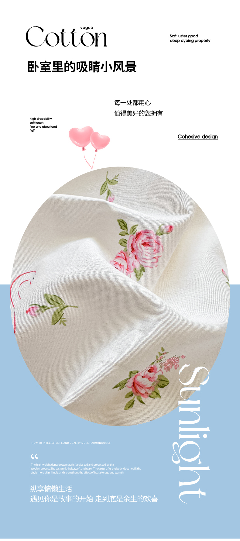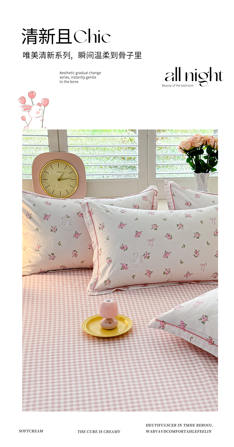 商品名称:洺兰家居 2025年新款全棉A类全喷气印花小清新单枕套 甜蜜蜜