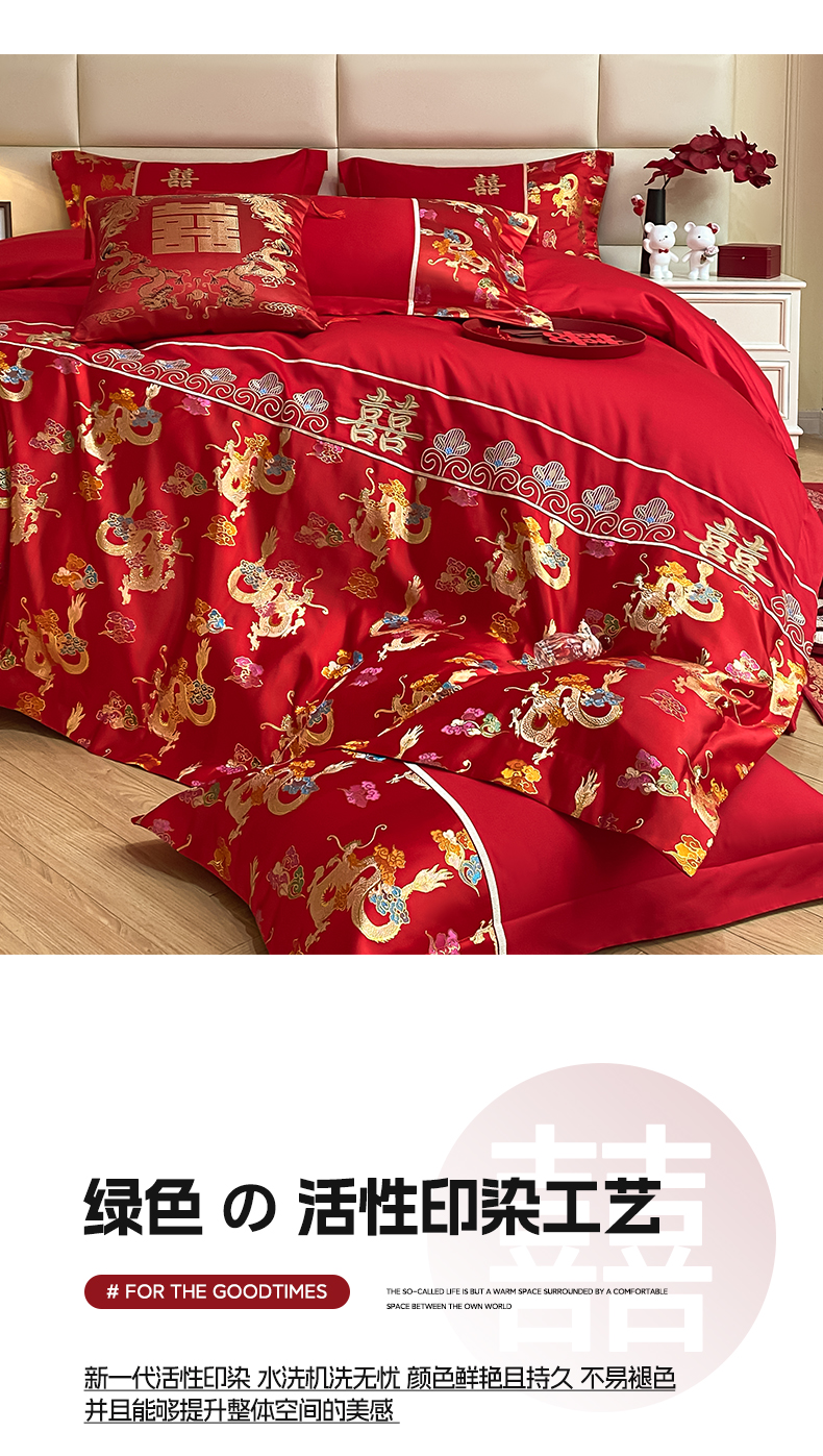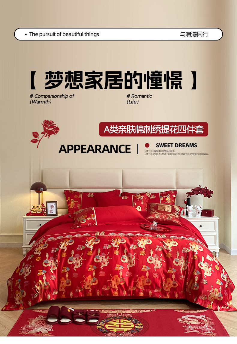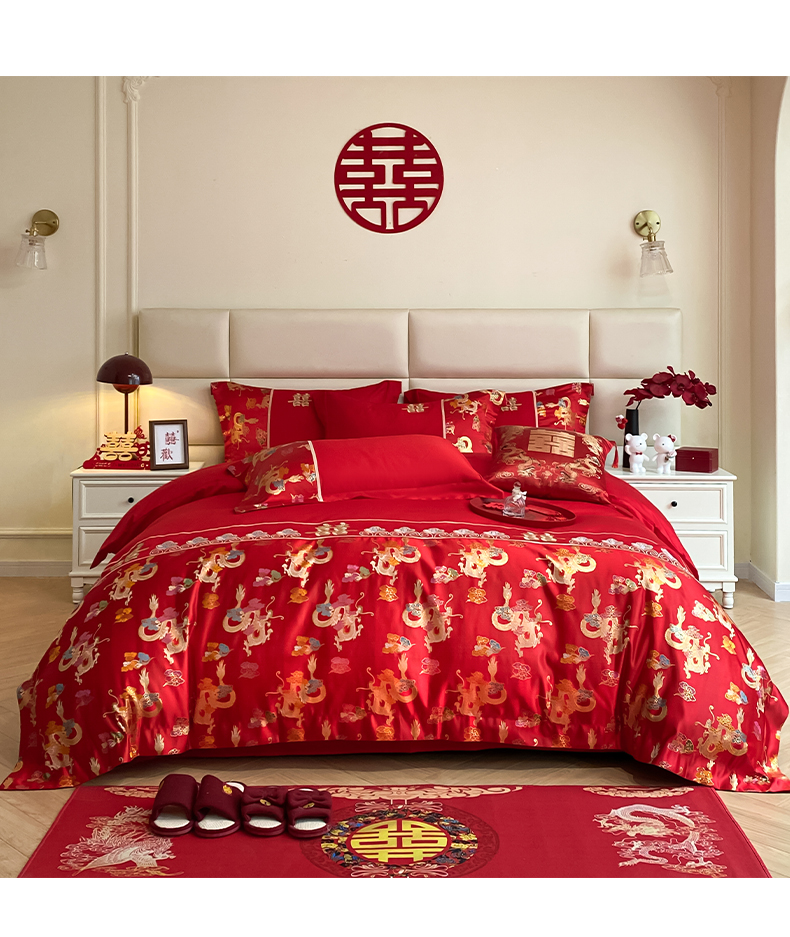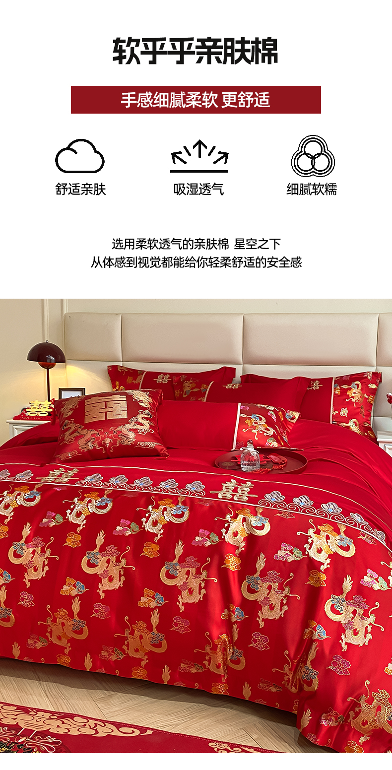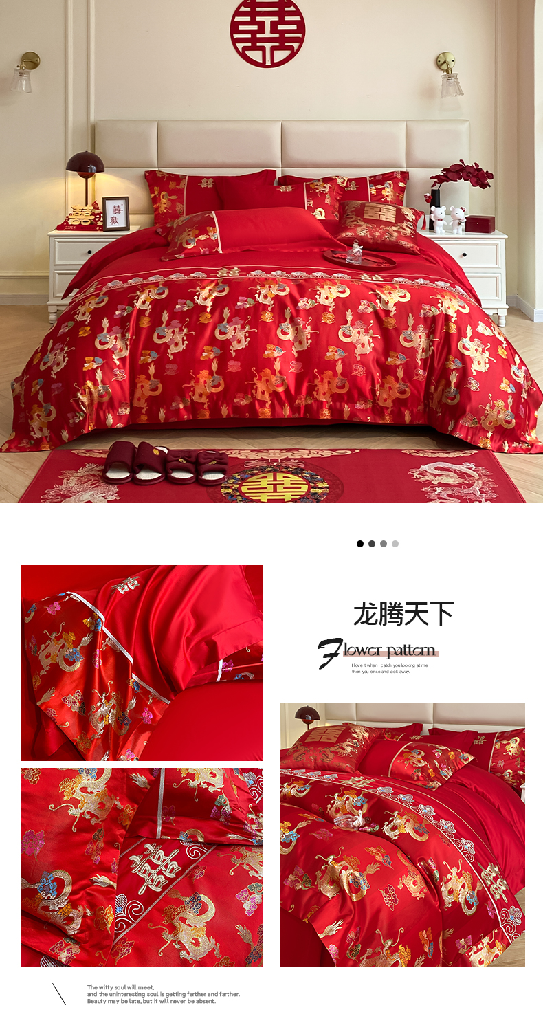 当前位置: 91家纺网 > 商品网购 > 床品套件 > 四件套 > 婚庆四件套 > 帝王家纺 2024新款A类亲肤棉刺绣锦缎提花婚庆四件套 龙腾天下