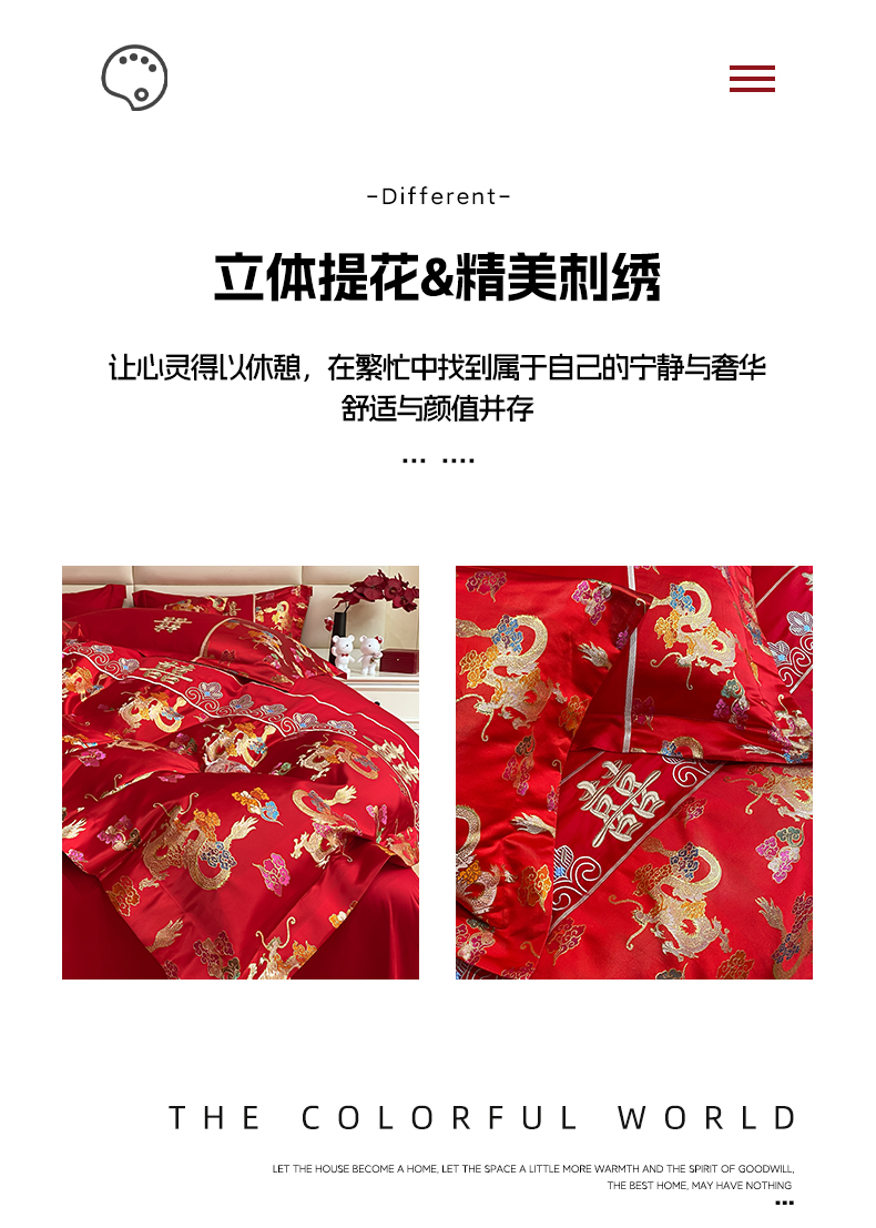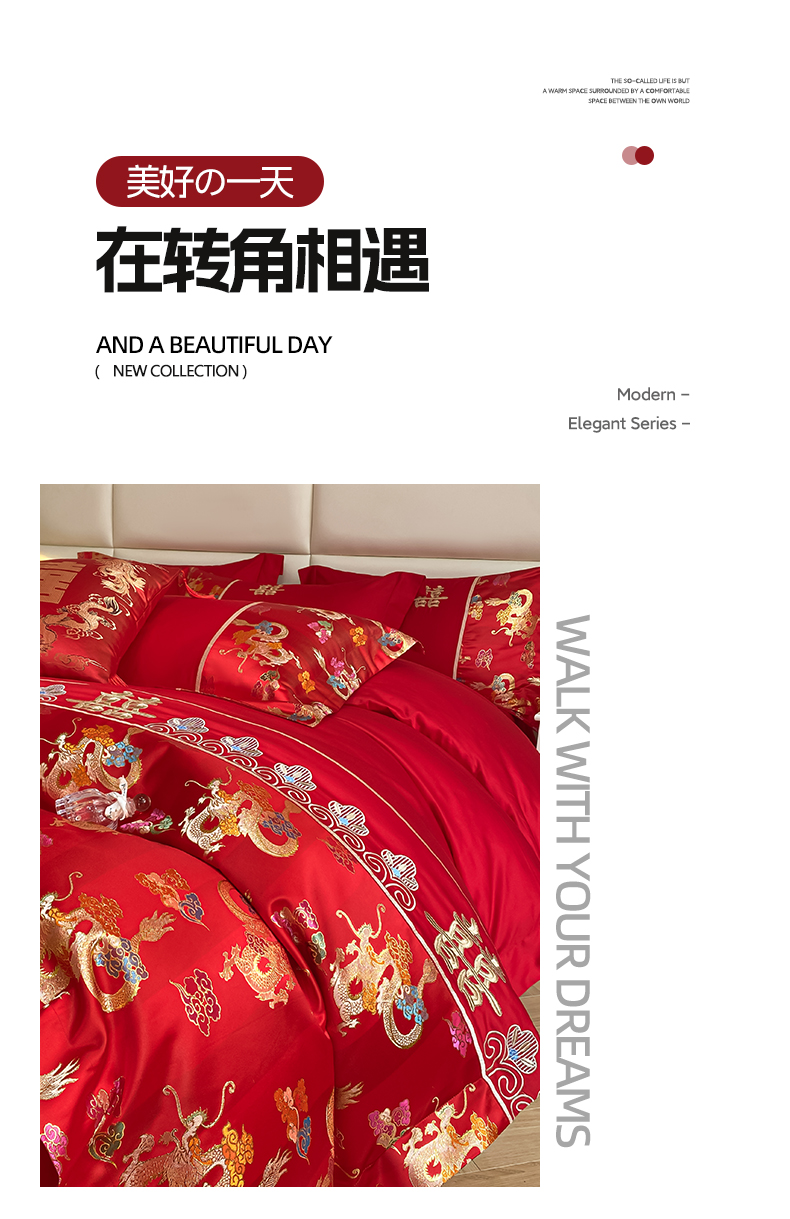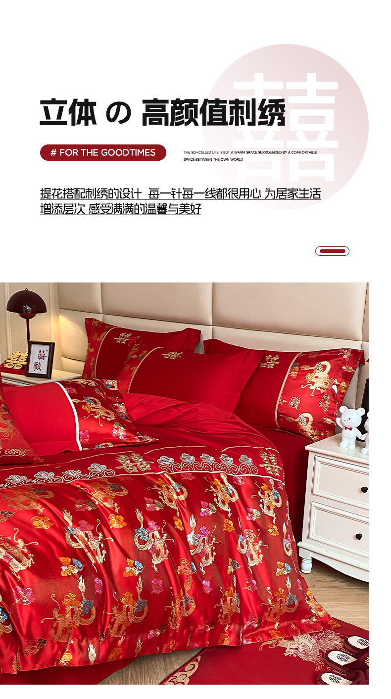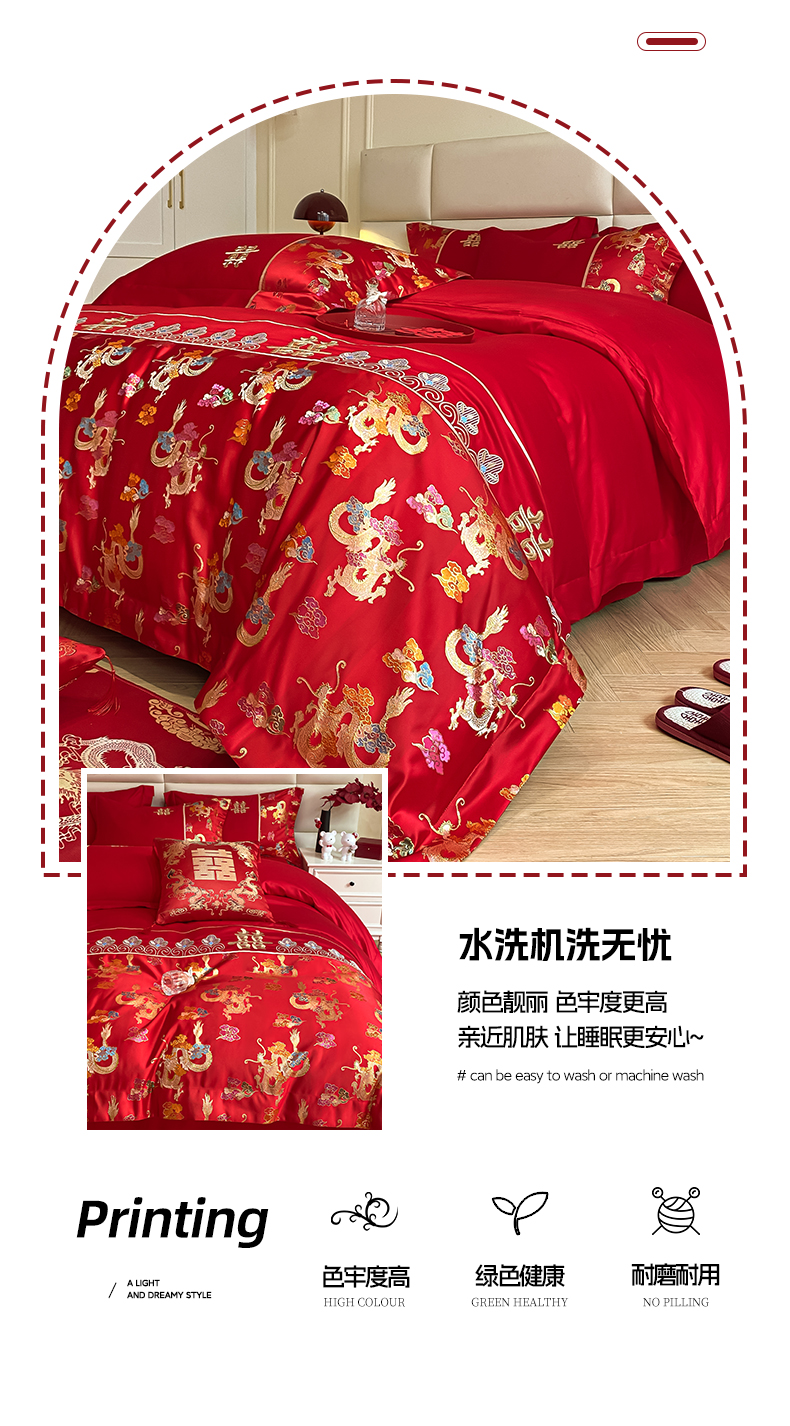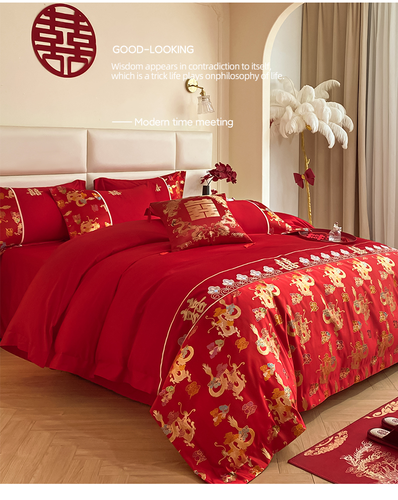 当前位置: 91家纺网 > 商品网购 > 床品套件 > 四件套 > 婚庆四件套 > 帝王家纺 2024新款A类亲肤棉刺绣锦缎提花婚庆四件套 龙腾天下
