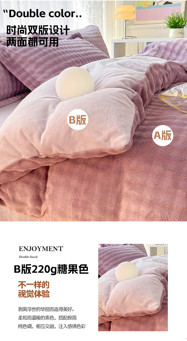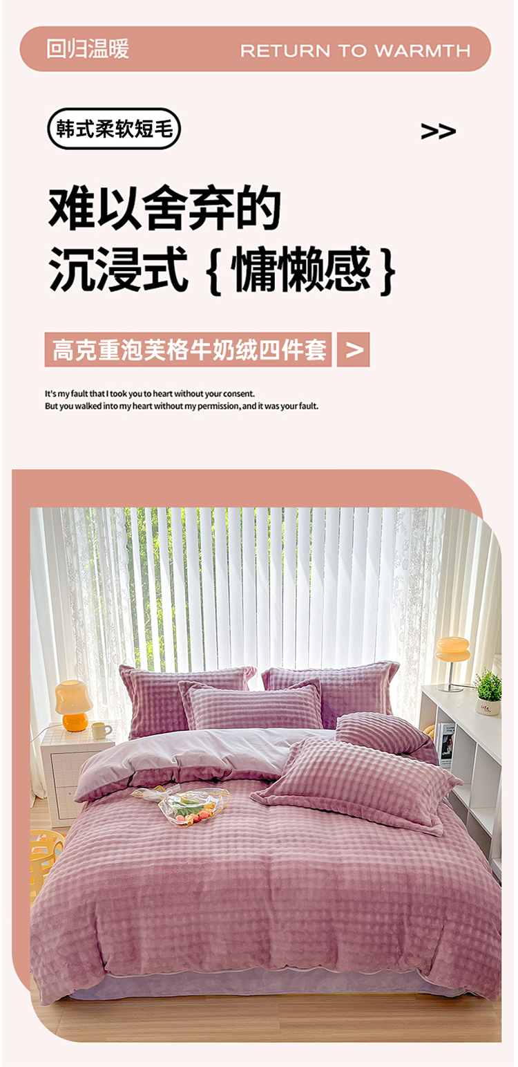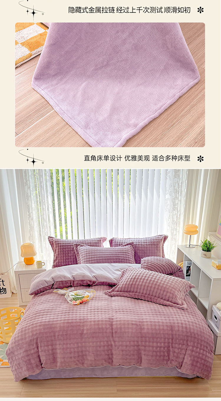 当前位置: 91家纺网 > 商品网购 > 床品套件 > 四件套 > 其它四件套 > (买家秀爆款不断货)A类母婴级高克重纯色獭兔绒四件套剪花牛奶绒四件套牛奶绒四件套纯色韩式兔毛绒四件套 韩式兔绒-豆蔻紫