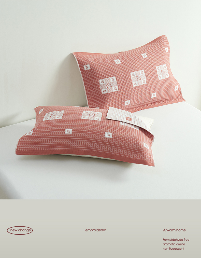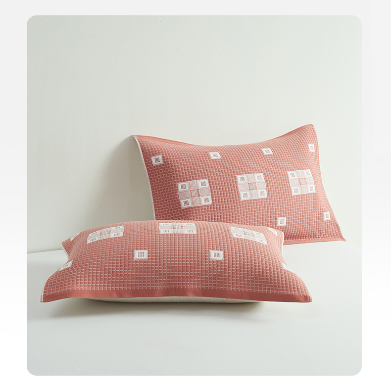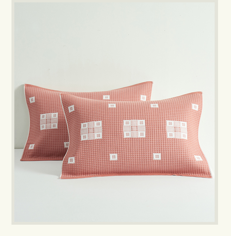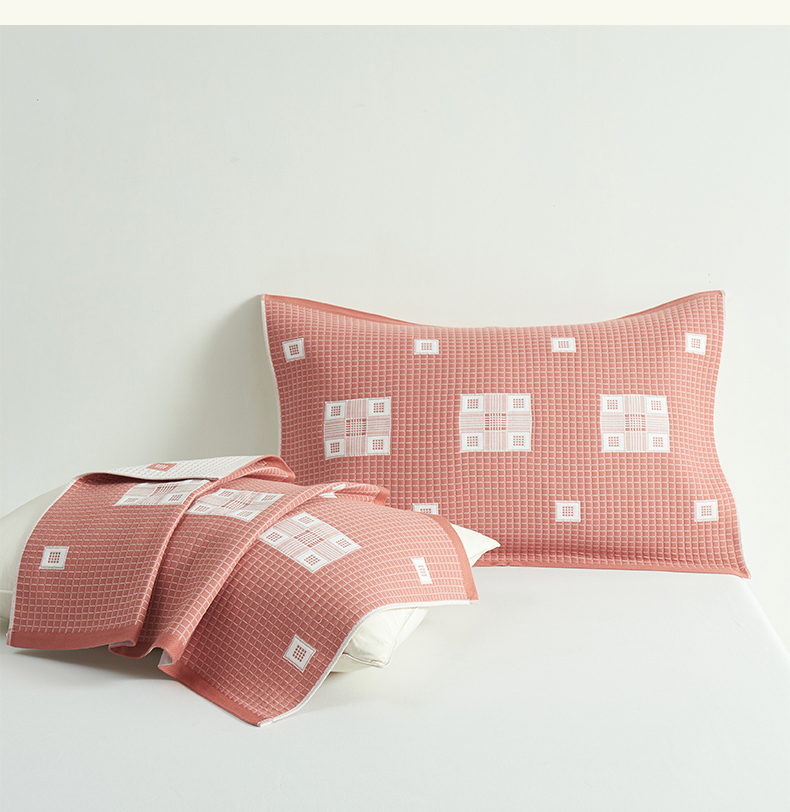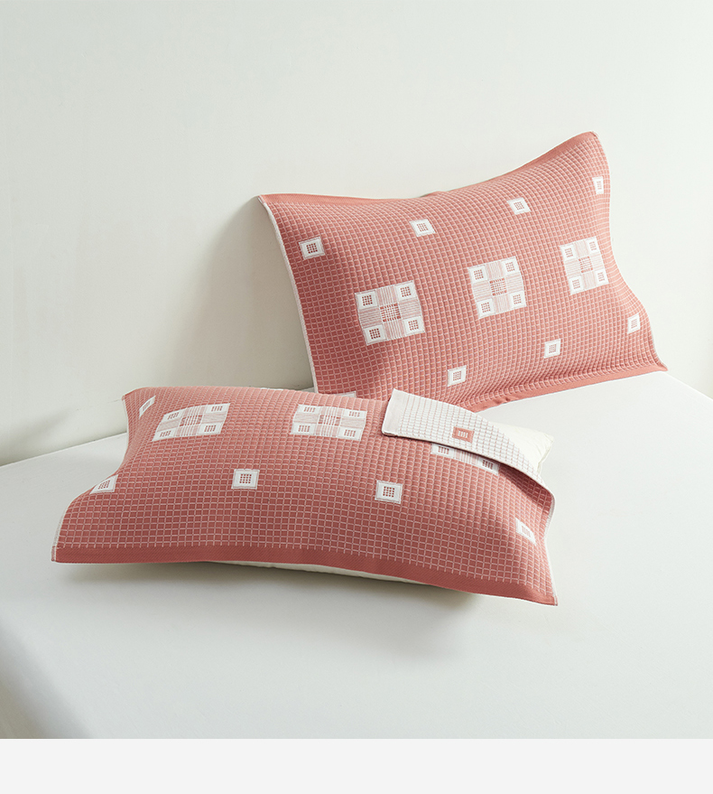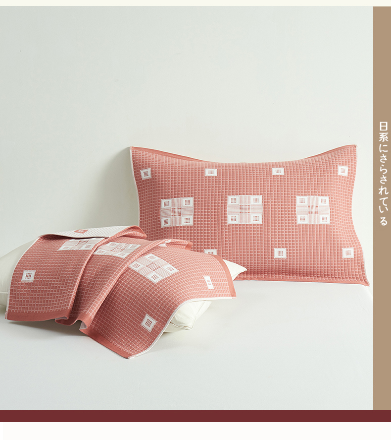 悦然毛巾被 2025新款全棉三层纱纱布枕巾50*80cm 窗格花橙