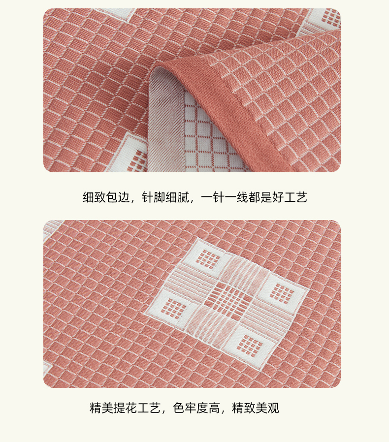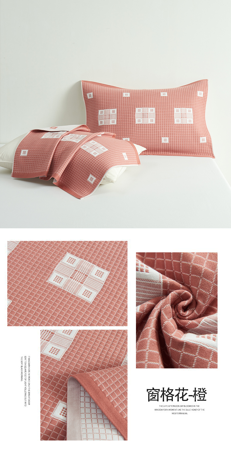 商品名称:悦然毛巾被 2025新款全棉三层纱纱布枕巾50*80cm 窗格花橙