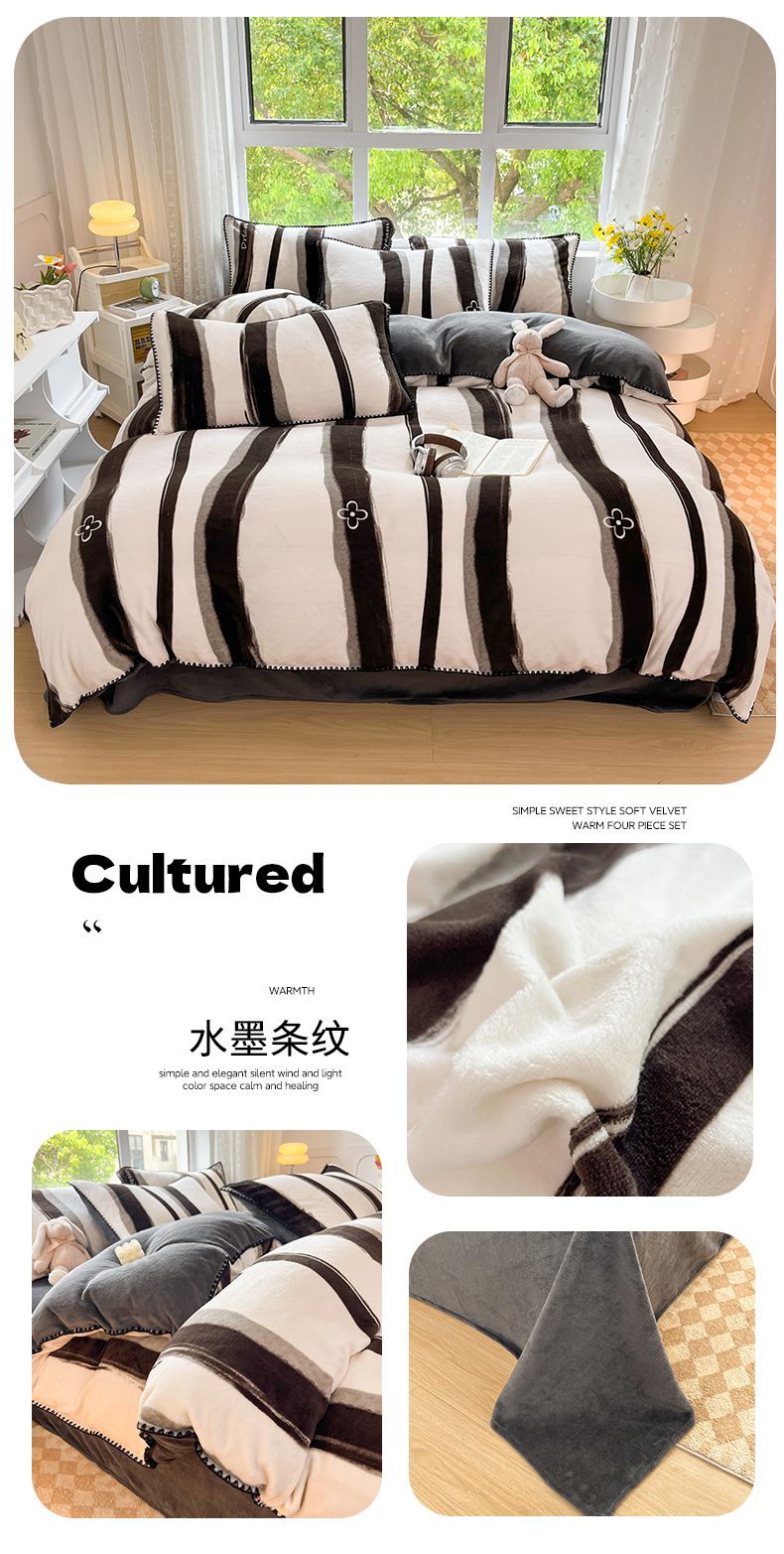 当前位置: 91家纺网 > 商品网购 > 床品套件 > 四件套 > 牛奶绒四件套 > (买家秀 爆款不断货)A类母婴级双面牛奶绒四件套三角针珊瑚绒雪花绒四件套高克重卡通牛奶绒四件套花卉 水墨条纹