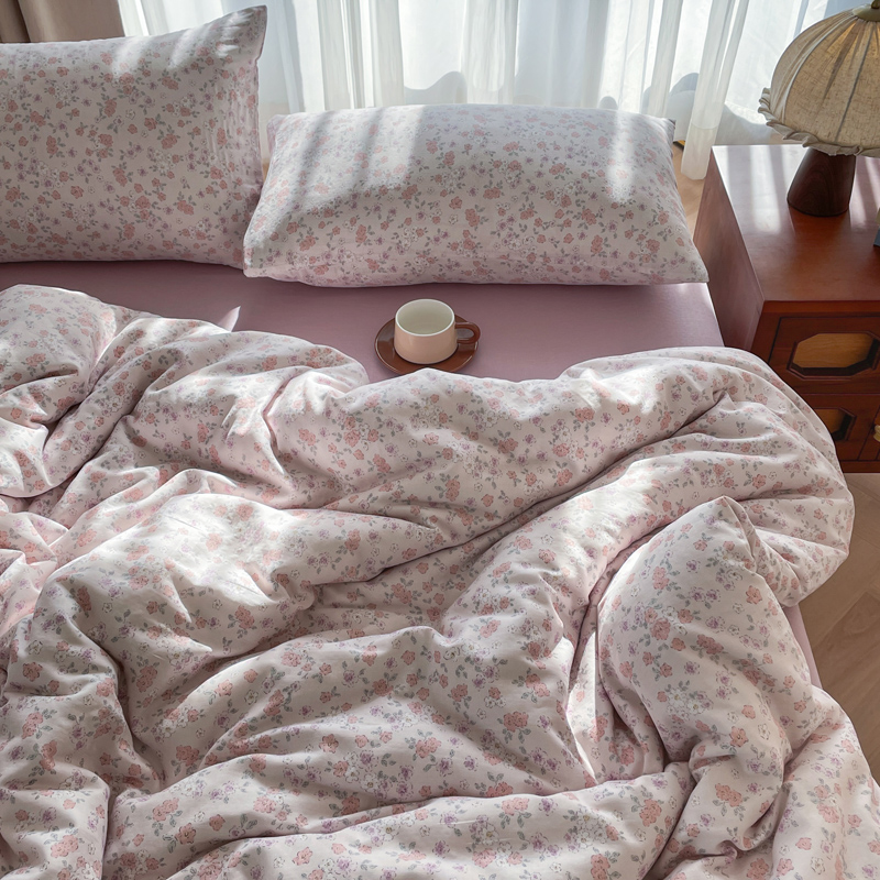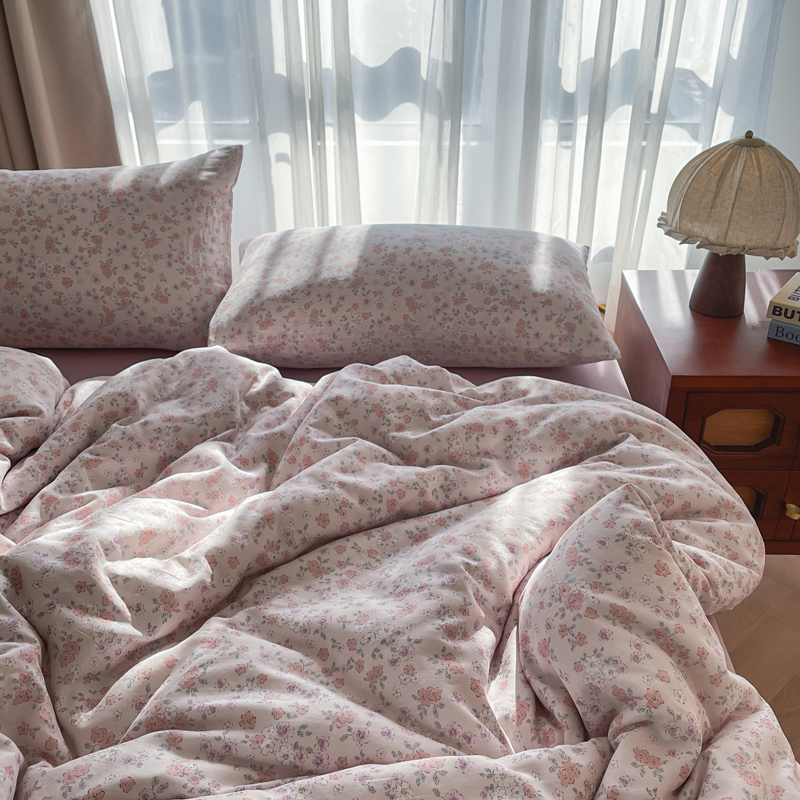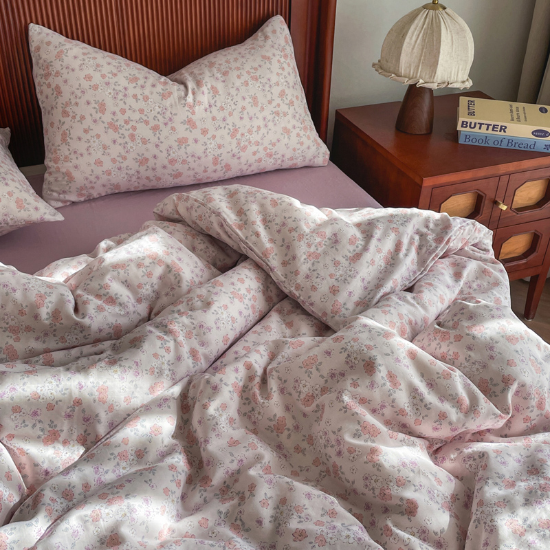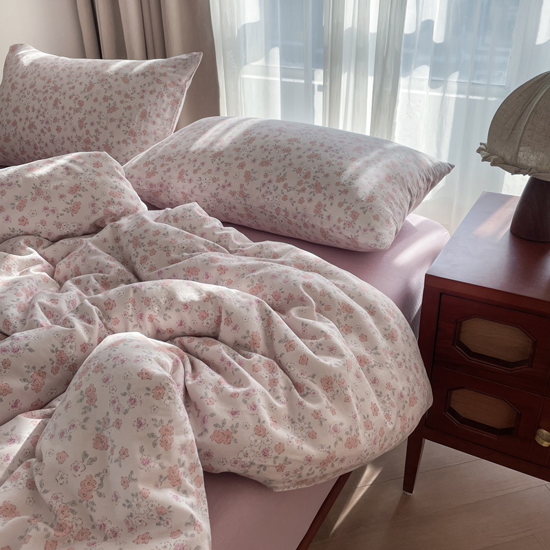 商品名称:一比一家纺 2025新款全棉母婴级抗菌有氧全棉双层纱亲肤全棉小清新印花三件套四件套 阳春三月