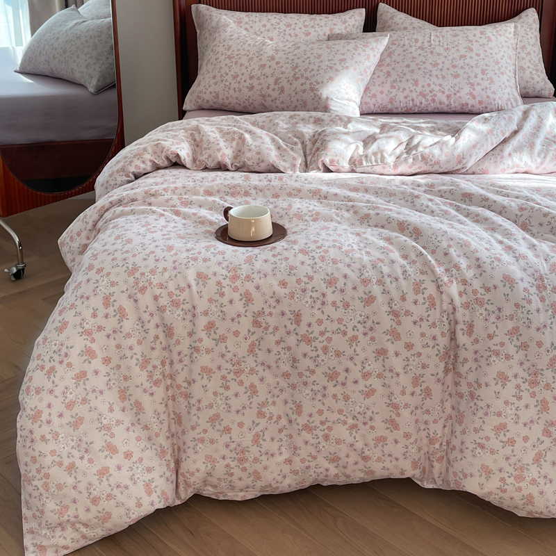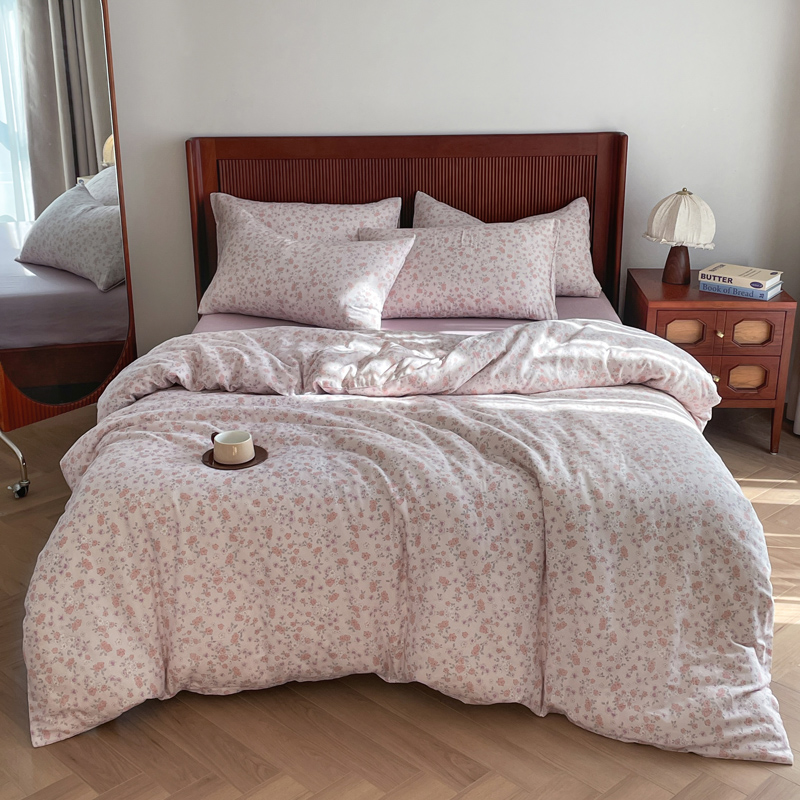 一比一家纺 2025新款全棉母婴级抗菌有氧全棉双层纱亲肤全棉小清新印花三件套四件套 阳春三月