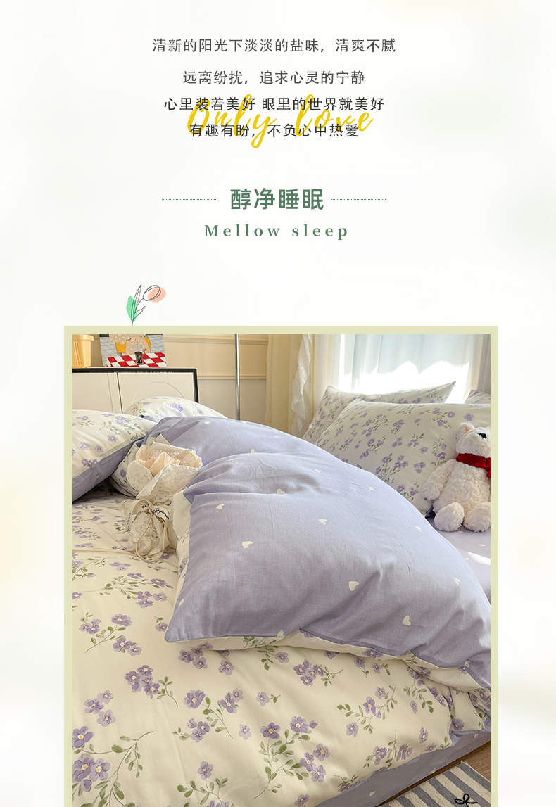 (总)捌月 2026新款奶油风全棉印花四件套,布丁,好朋友,花间小兔,花屿,露丝,蘑菇屋,奶芙,奶酪小羊,甜蜜,汐薇,小朵朵,幸运狗