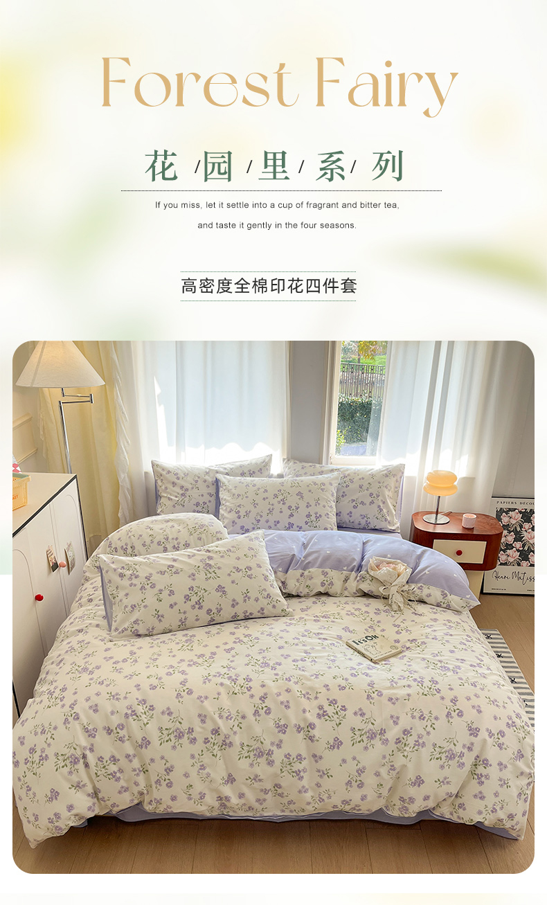 (总)捌月 2025新款13372全棉四件套花园里系列小清新全棉四件套热卖新品,艾美,蓝风铃,蓝汐,流年,魅影,木兰,年华,浅浅,青花瓷,青木,轻颜,韶华,思绪,汐月