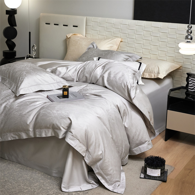 商品名称:淳绵家居 2025新款50*50S长绒棉贡缎提花手工立体埋绳工艺四件套(礼盒包装) 流金时光(时尚灰)