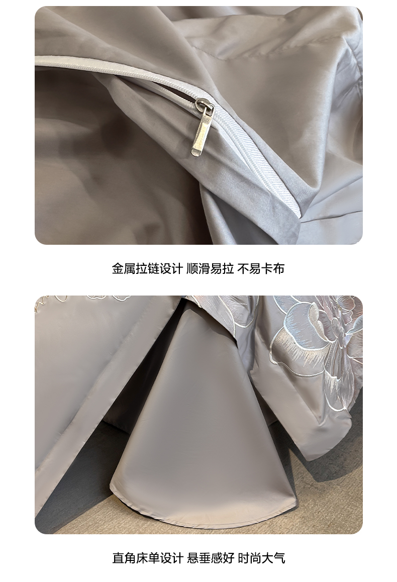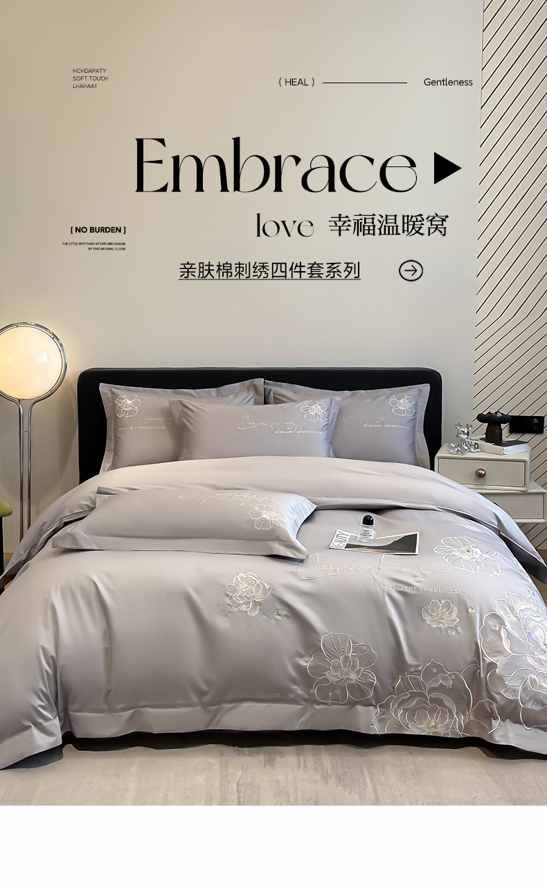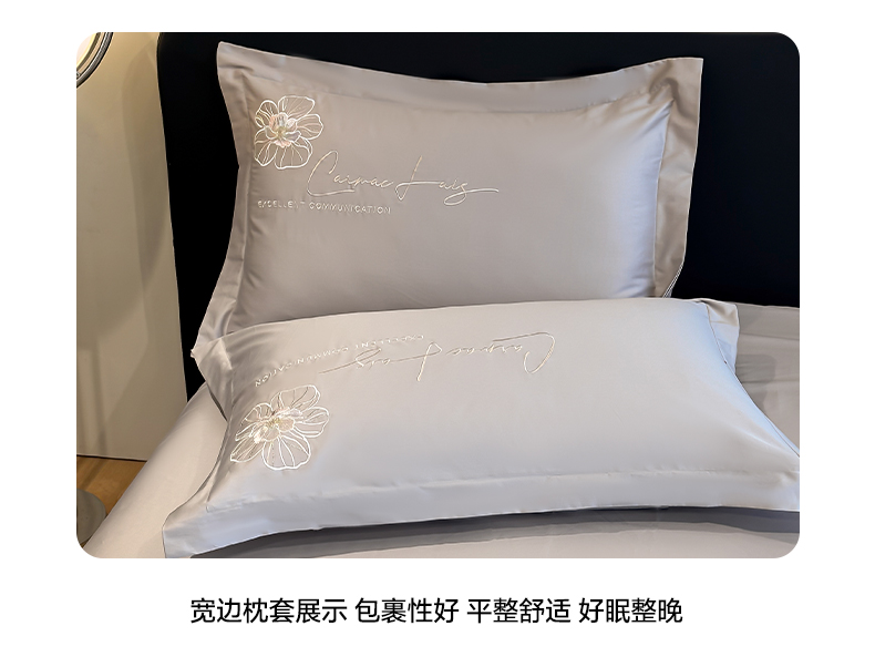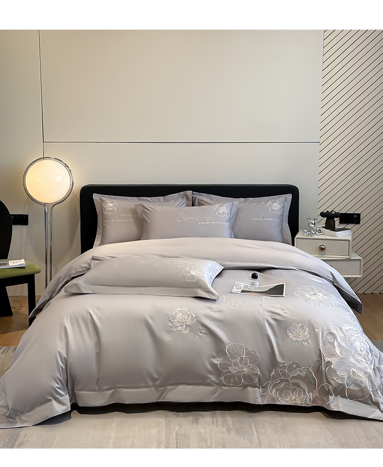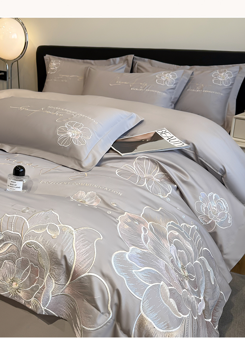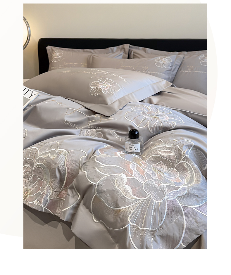 商品名称:欧乐蒂 2025新款亲肤棉刺绣四件套-花韵 花韵-夜灰