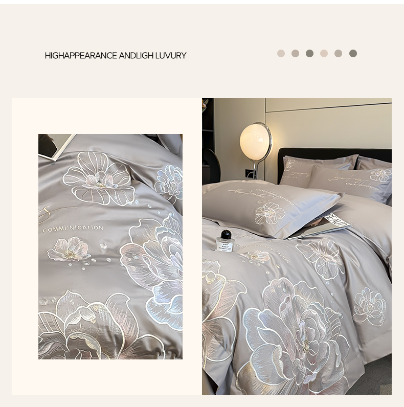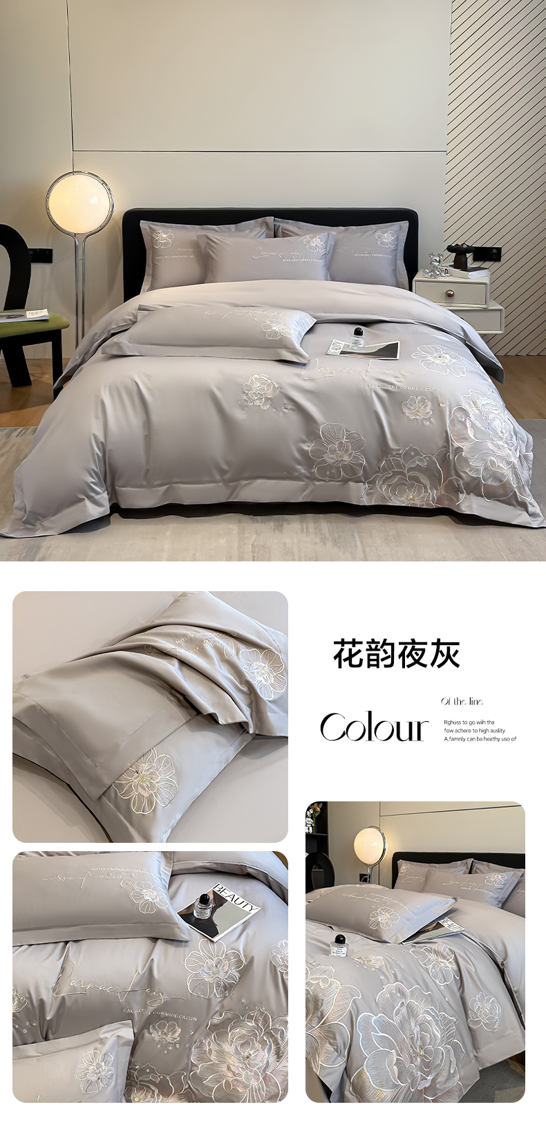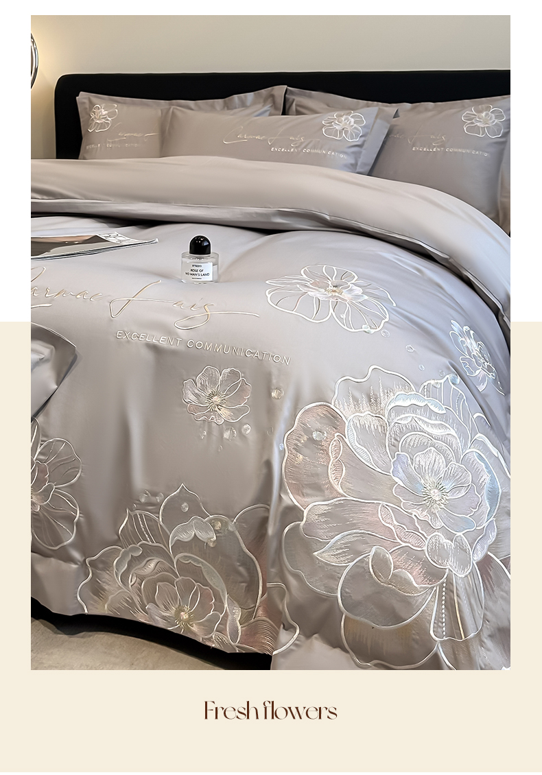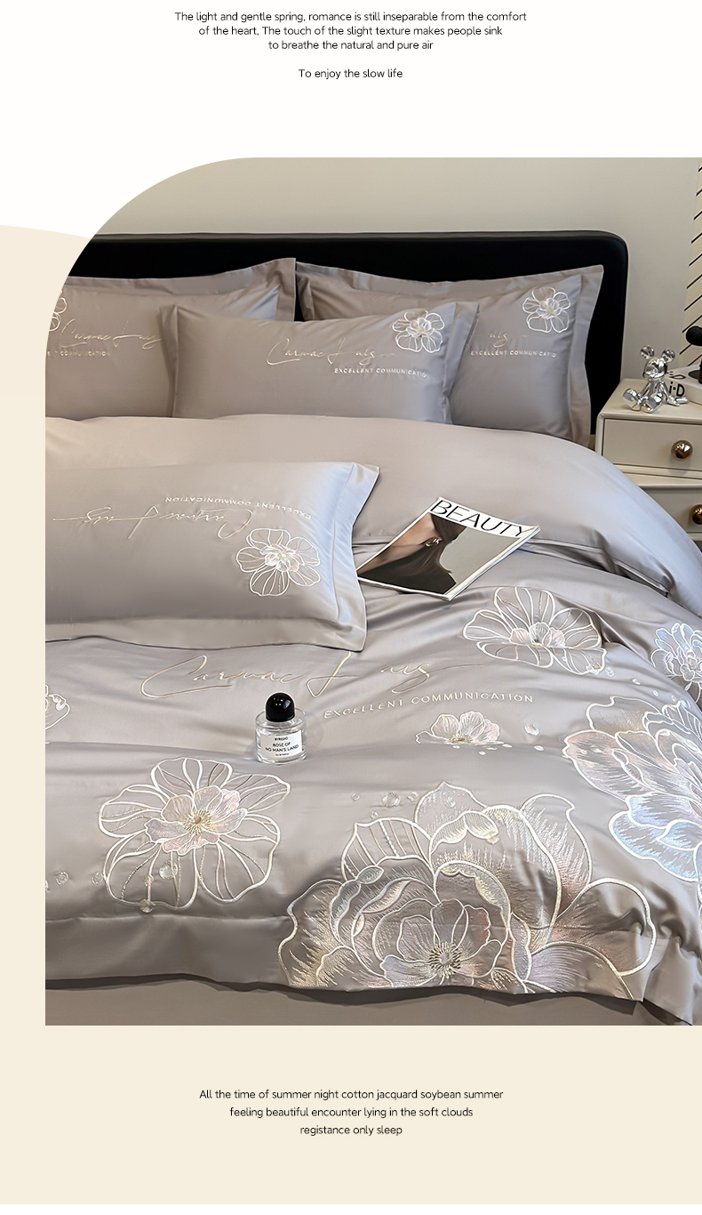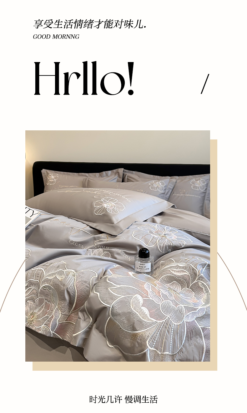 商品名称:欧乐蒂 2025新款亲肤棉刺绣四件套-花韵 花韵-夜灰