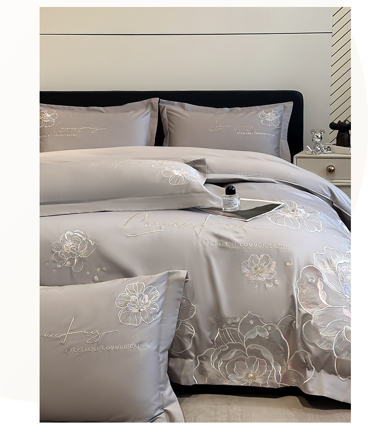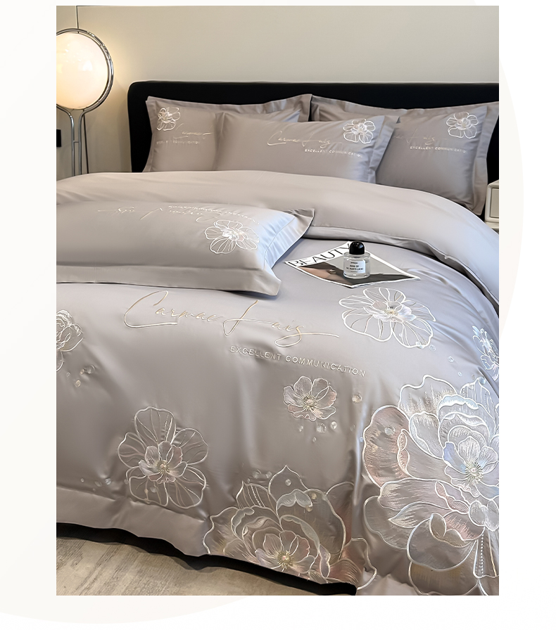 欧乐蒂 2025新款亲肤棉刺绣四件套-花韵 花韵-夜灰