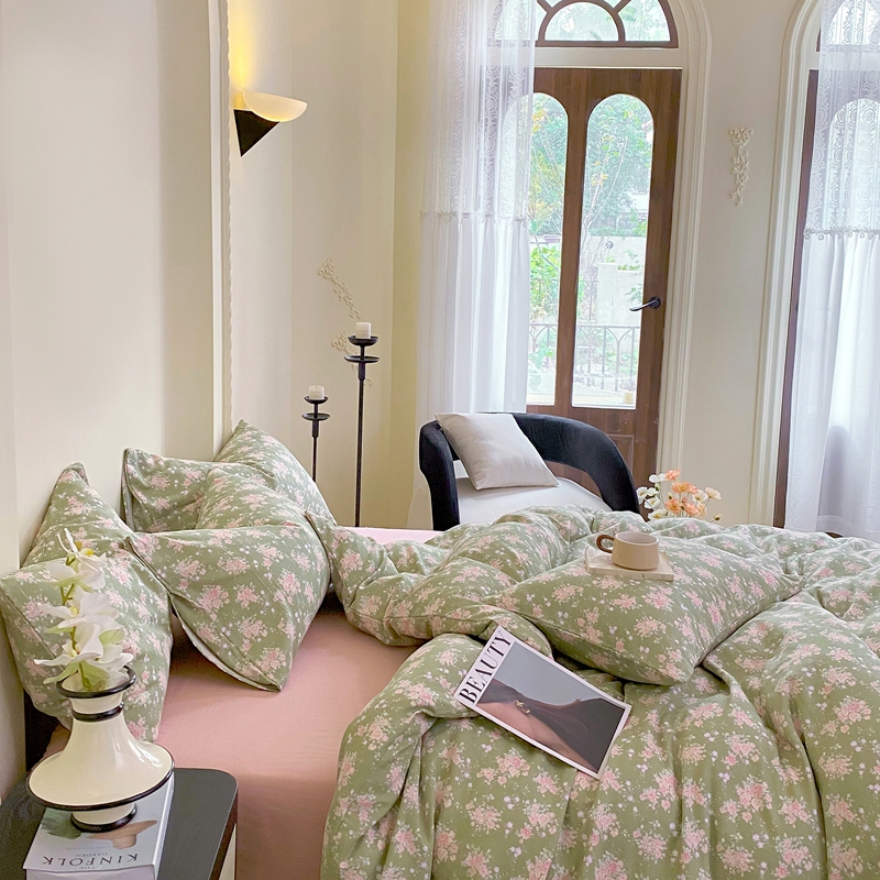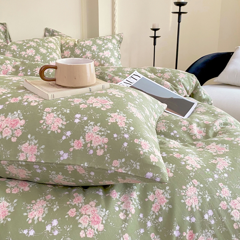 商品名称:于果 2025新款全棉双层纱四件套 玛德琳娜-绿