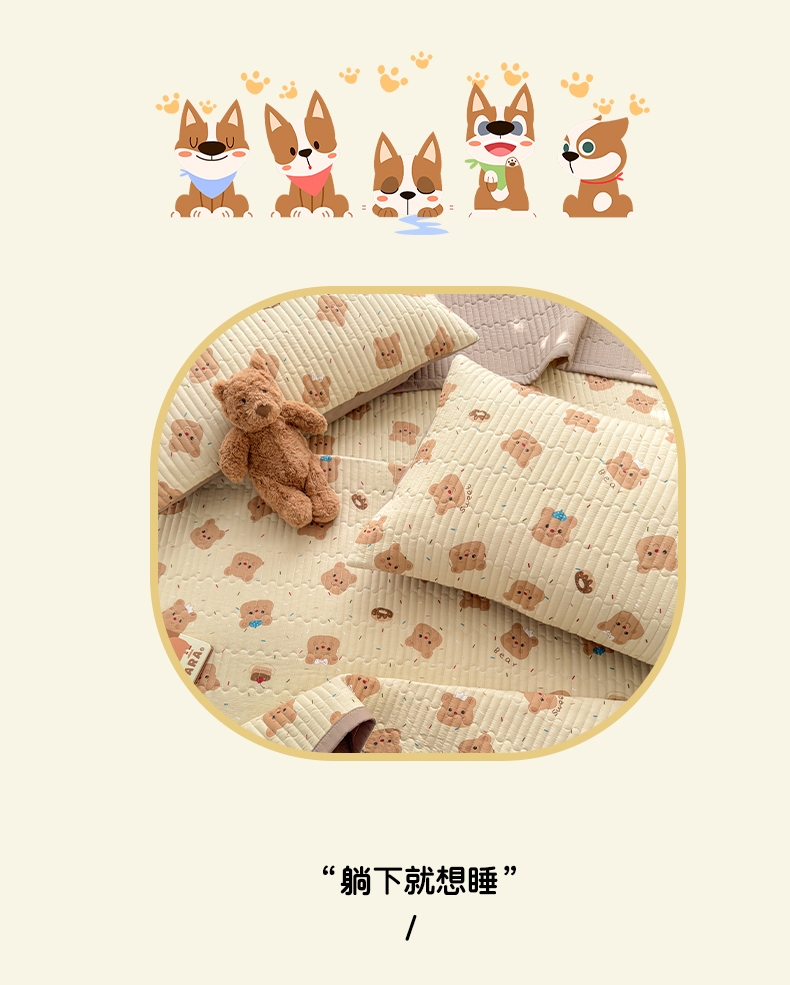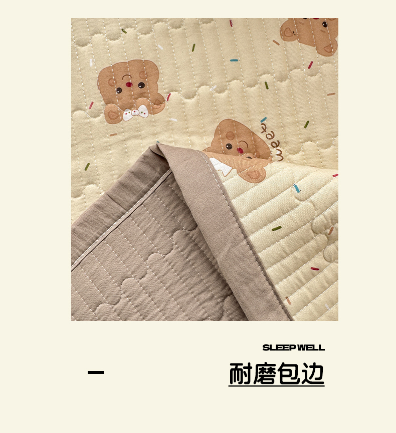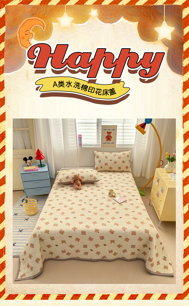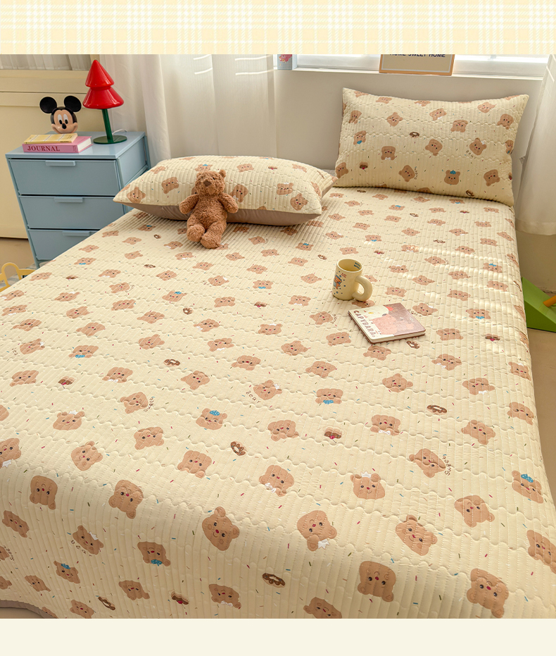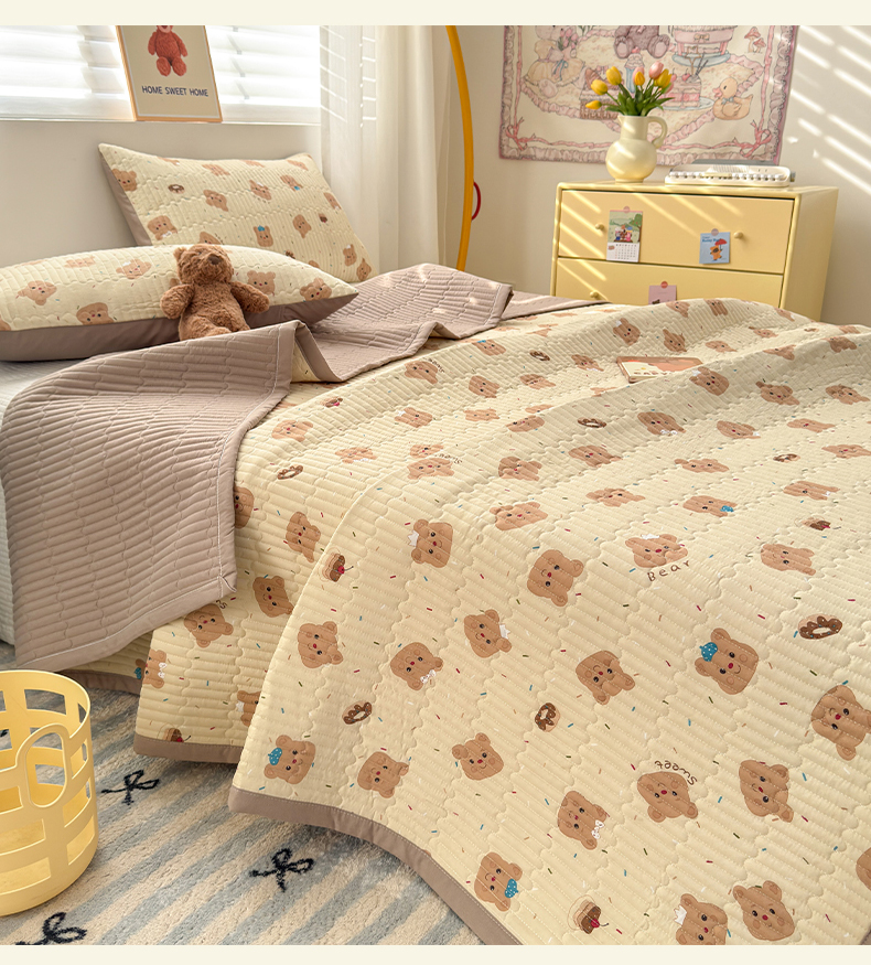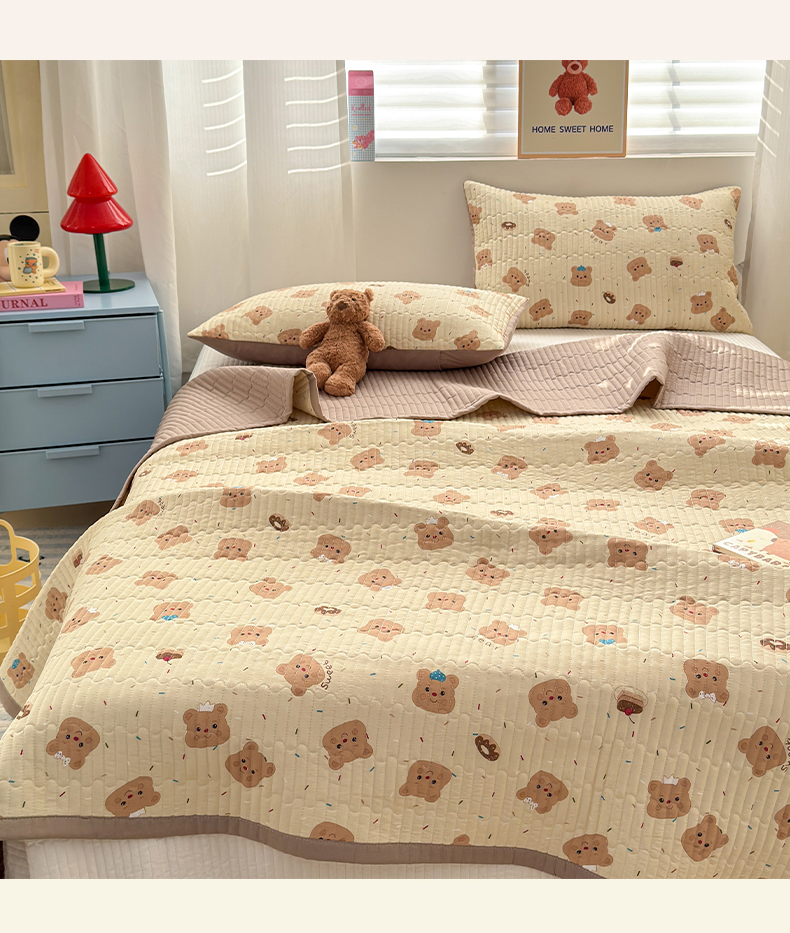 商品名称:罗亿家纺 2025新款水洗棉双层纱夹棉绗缝床盖(提供买家秀) 奥利奥小熊