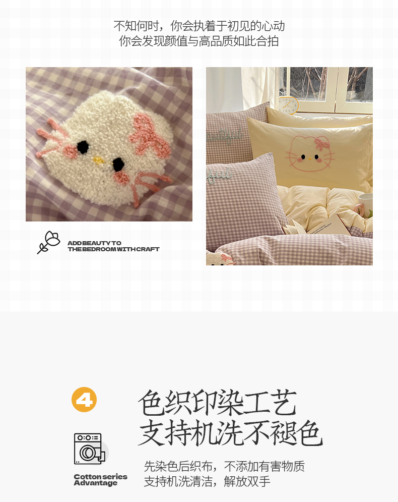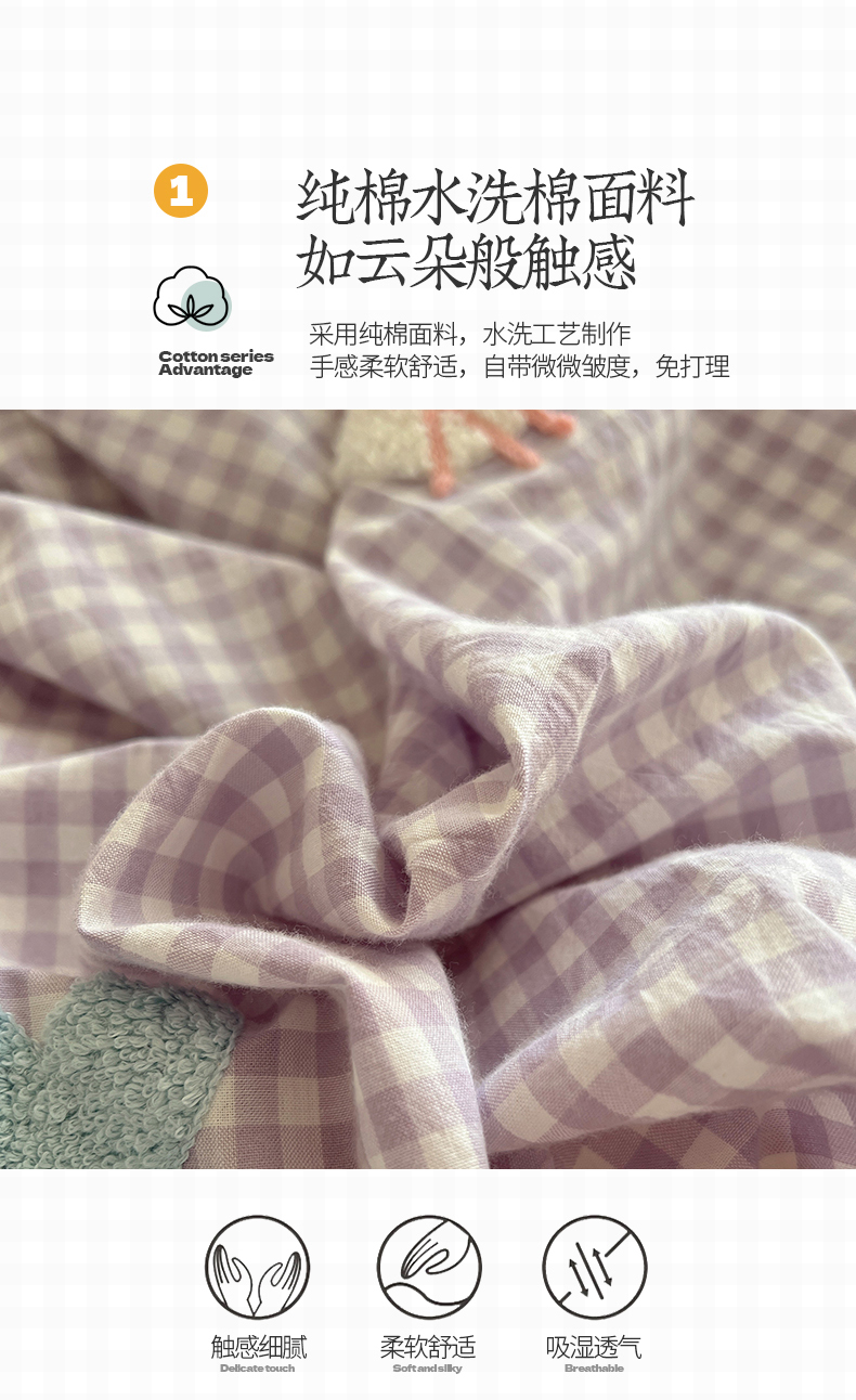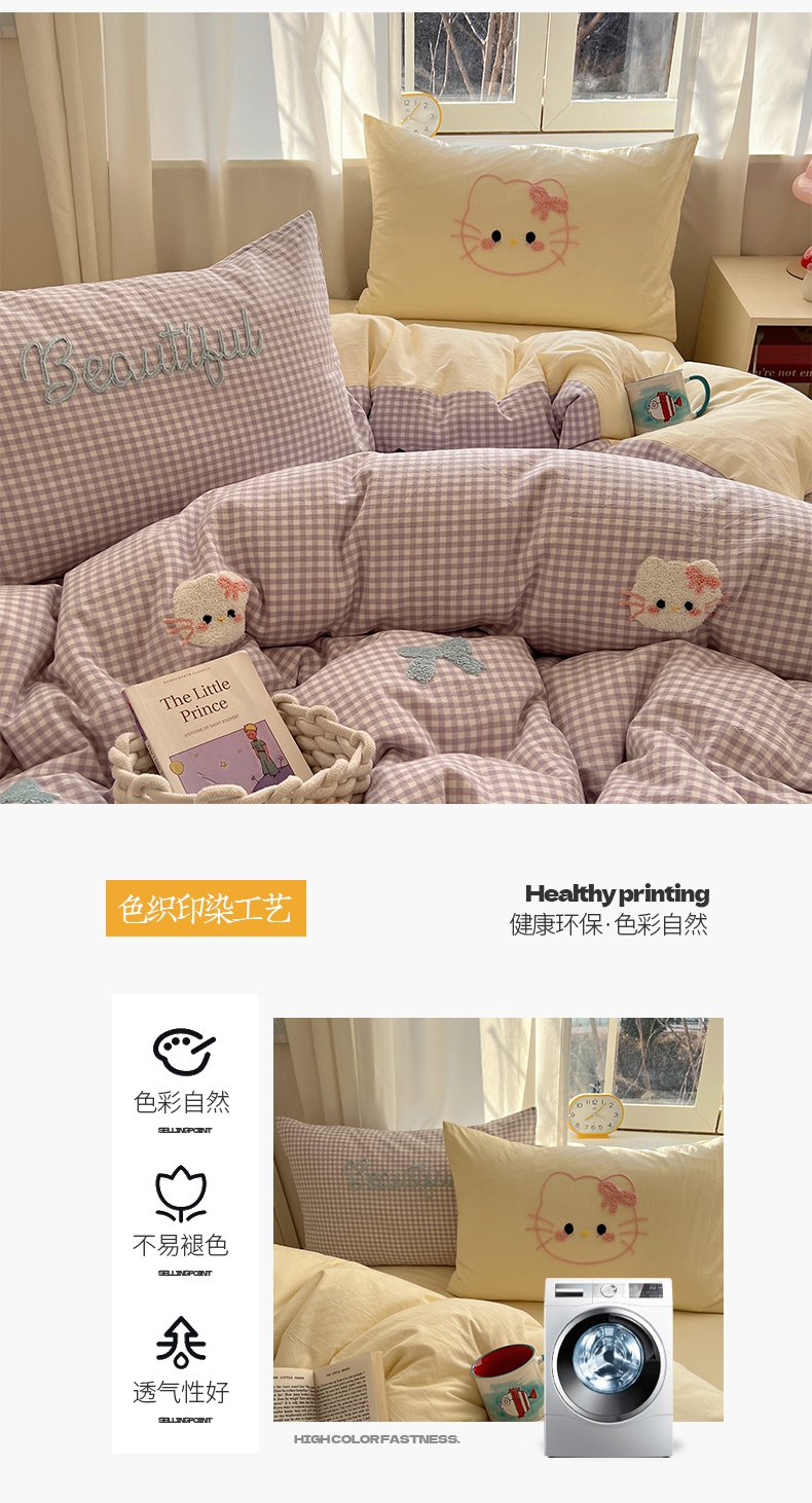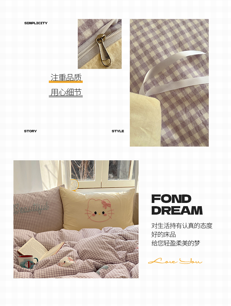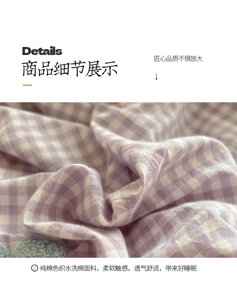 当前位置: 91家纺网 > 商品网购 > 床品套件 > 四件套 > 水洗棉四件套 > 桃子家居 2025新款A类ins纯棉色织水洗棉毛巾绣奶油少女猫咪兔兔混搭系列四件套 色织水洗棉-猫咪紫黄