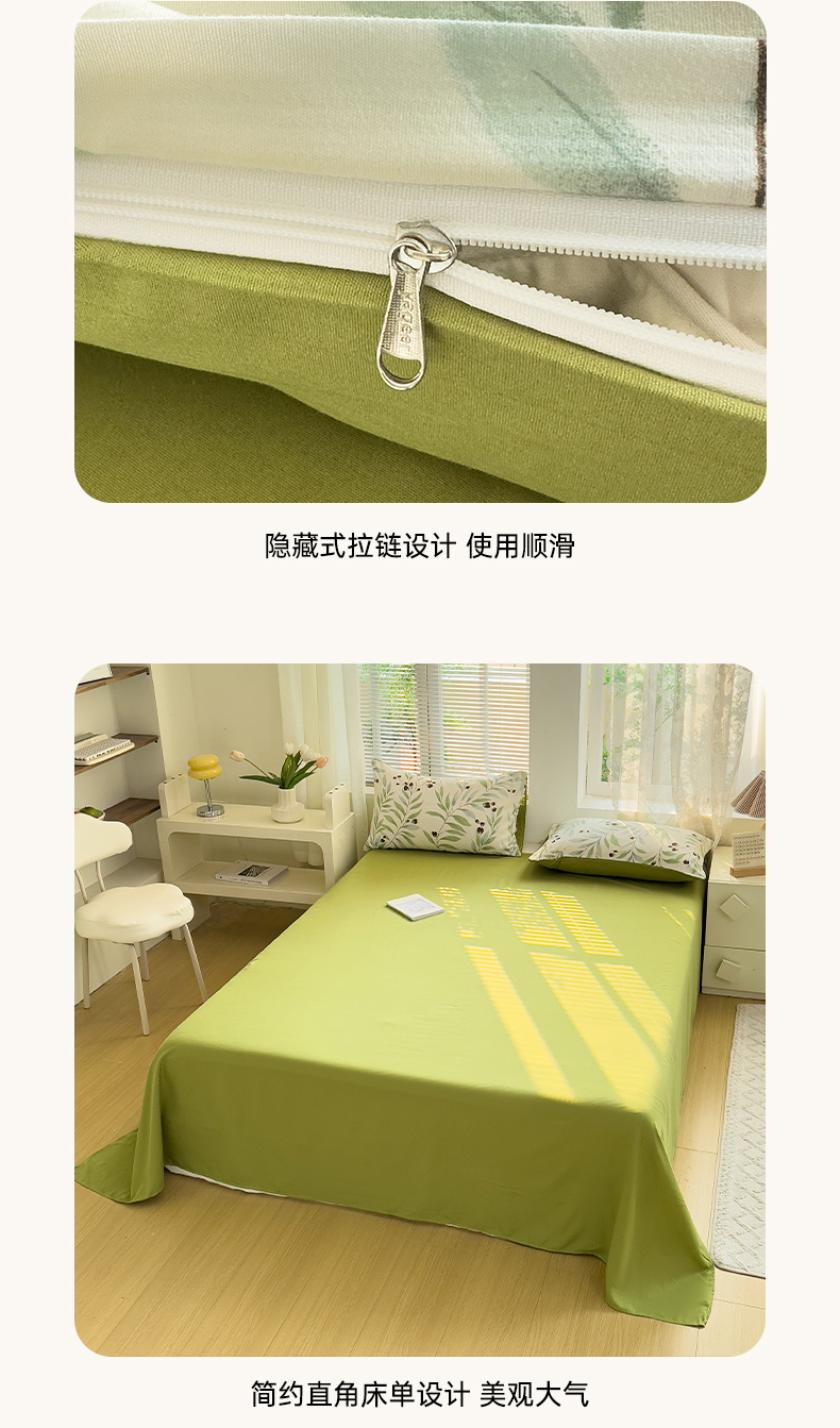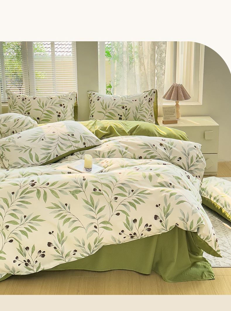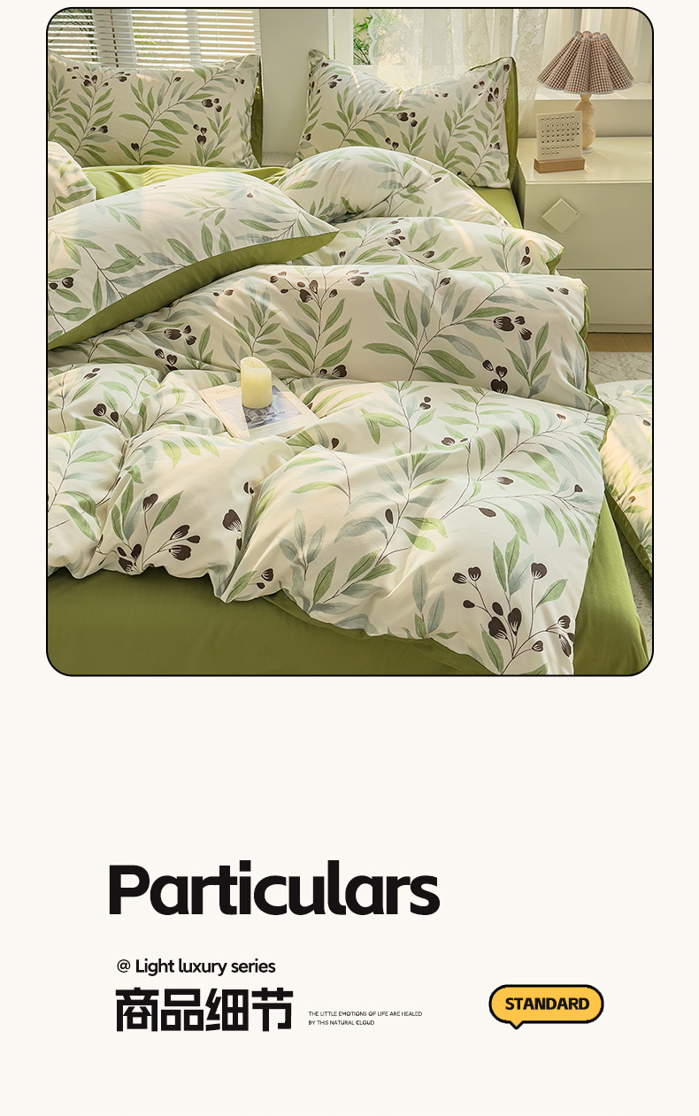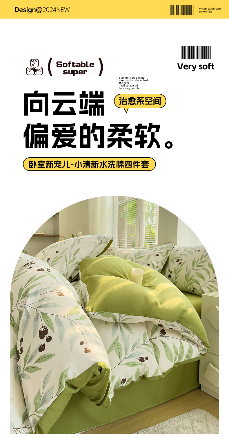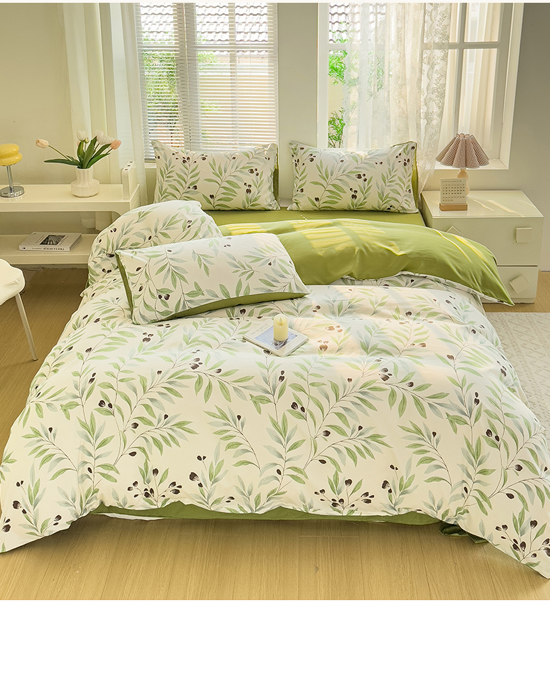 雅阁尔2025新款直播热款水洗棉四件套小碎花床单被套三件套 画色