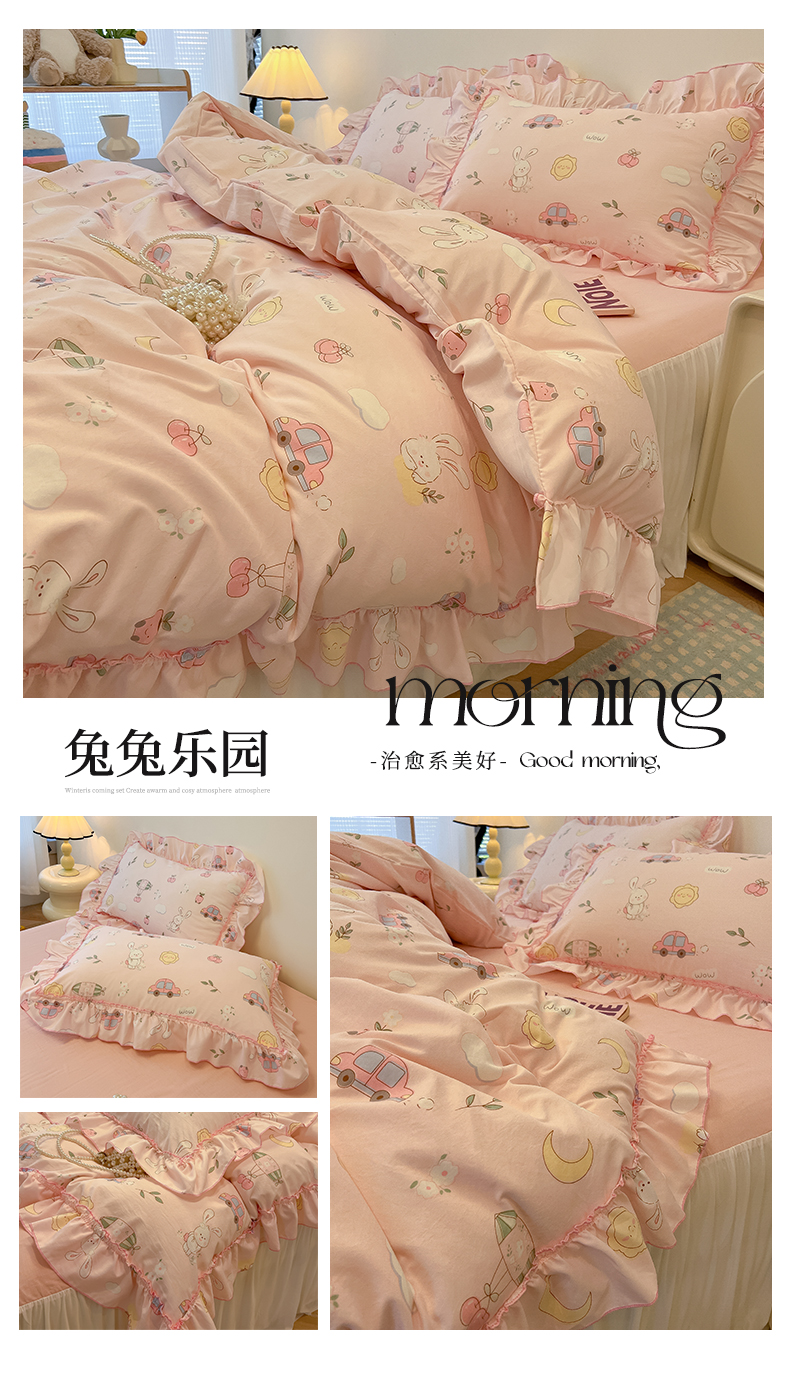 当前位置: 91家纺网 > 商品网购 > 床品套件 > 四件套 > 其它四件套 > 盼季家纺 2025新款公主风花边小清新水洗棉床上四件套床单被套床裙三件套-风格一 兔兔乐园