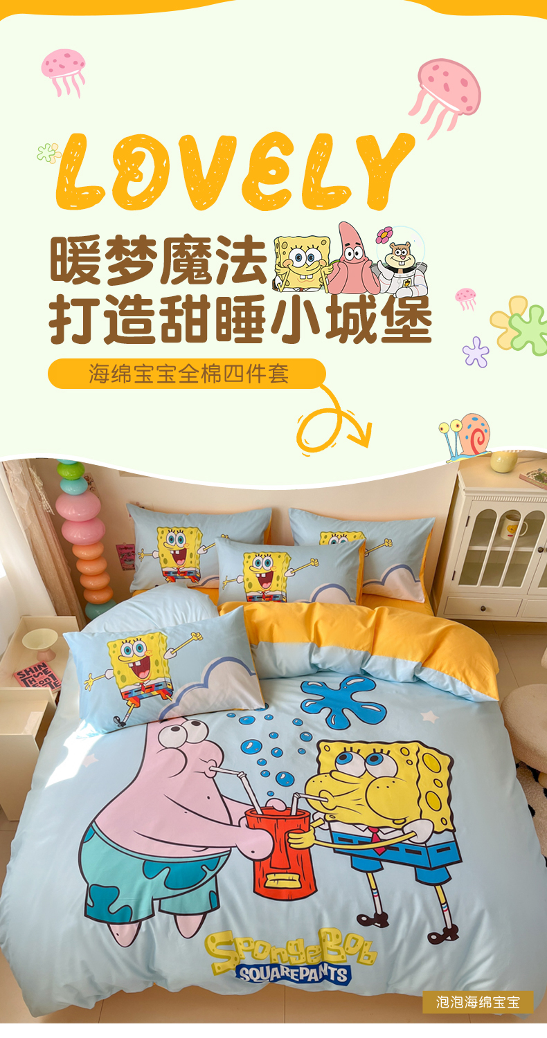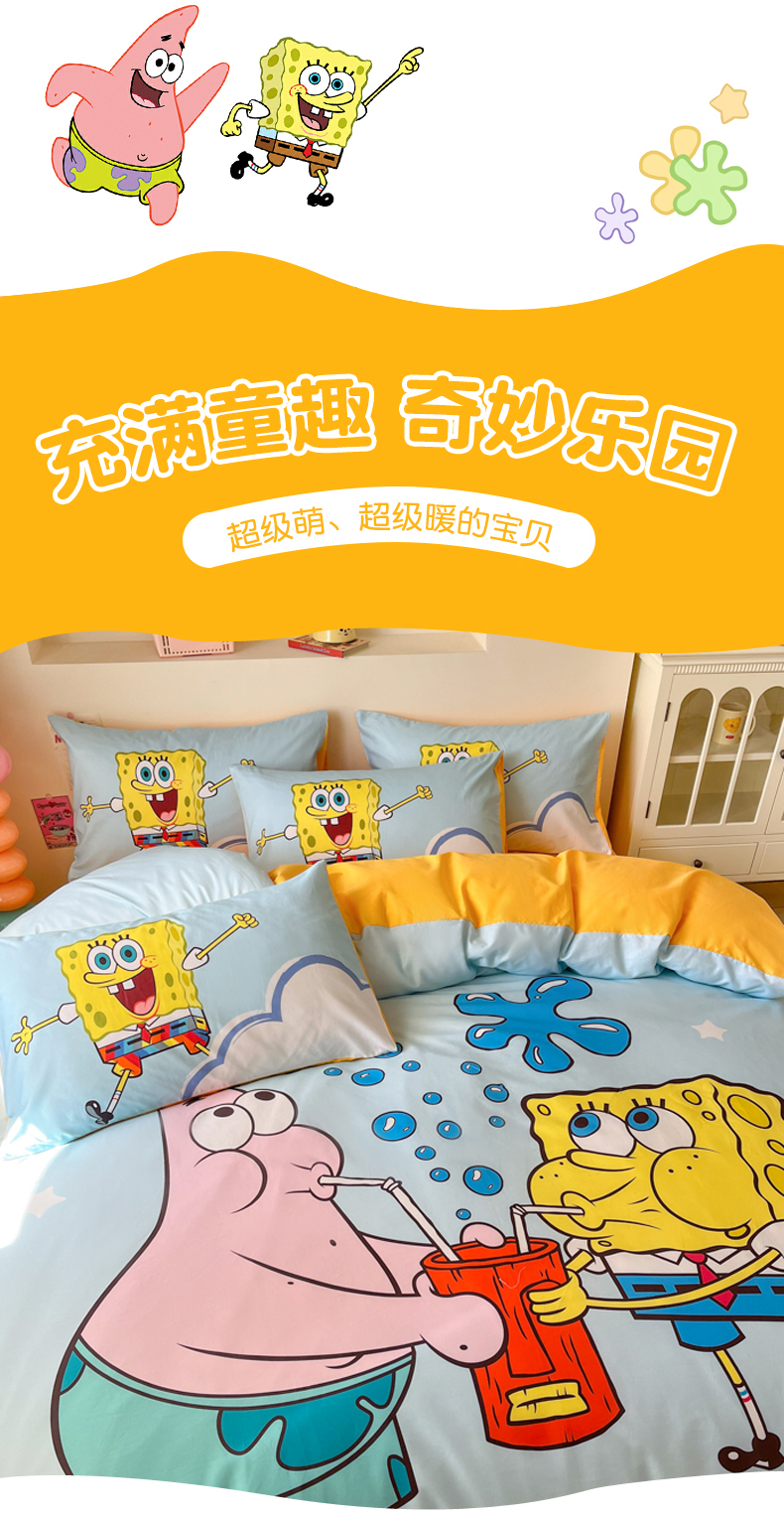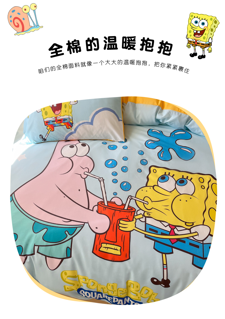 当前位置: 91家纺网 > 商品网购 > 床品套件 > 四件套 > 全棉普通四件套 > 金爱家纯棉数码印花系列四件套-海绵宝宝 棉D-泡泡海绵宝宝