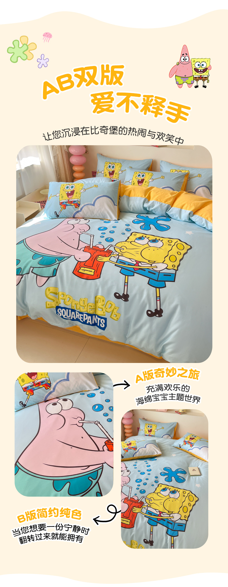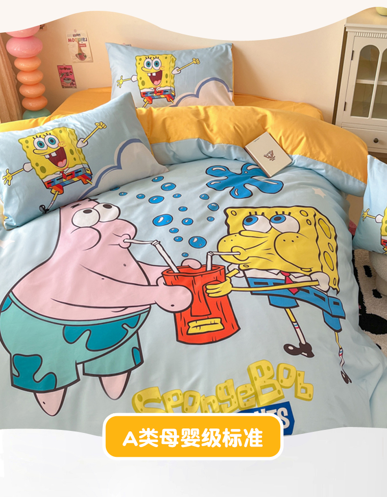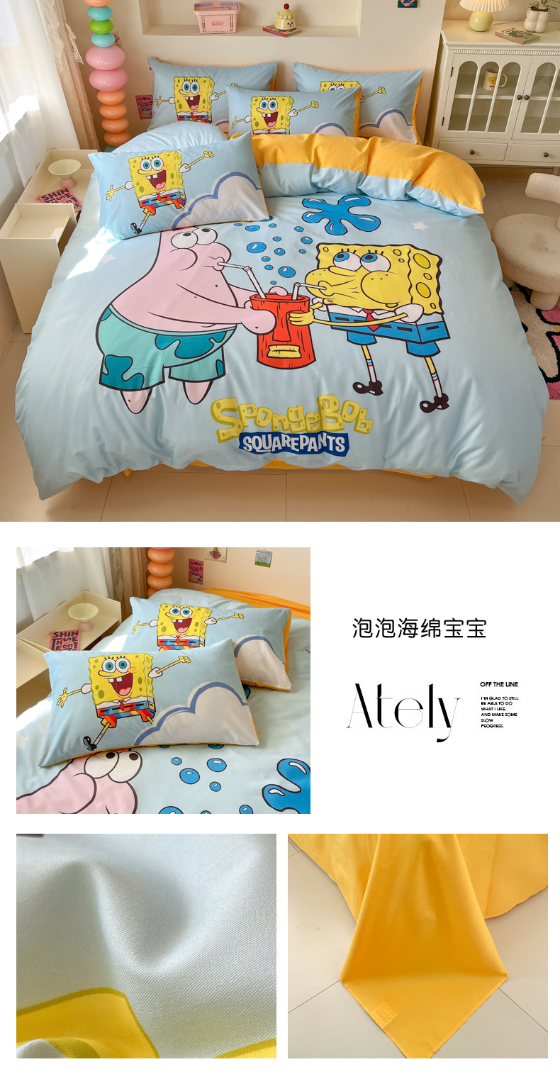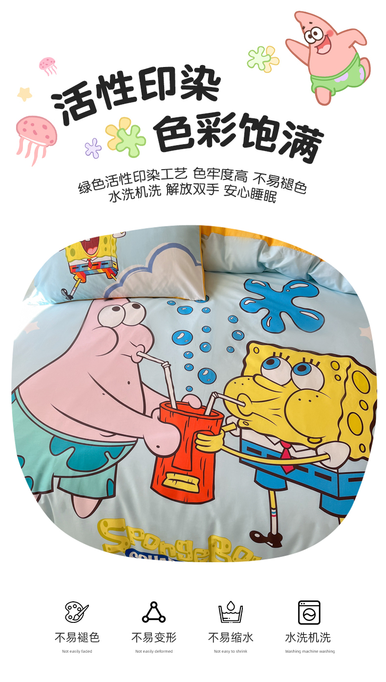 当前位置: 91家纺网 > 商品网购 > 床品套件 > 四件套 > 全棉普通四件套 > 金爱家纯棉数码印花系列四件套-海绵宝宝 棉D-泡泡海绵宝宝