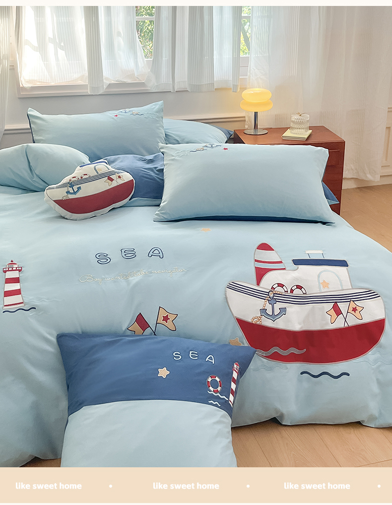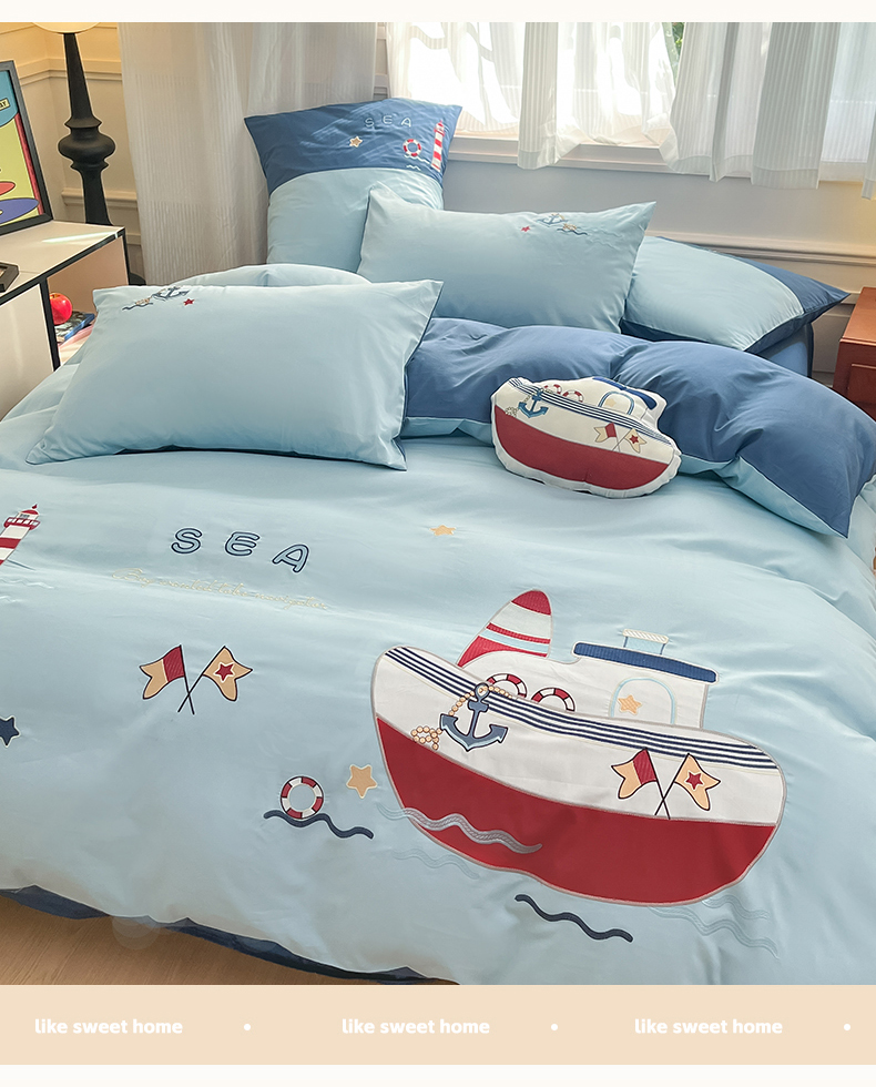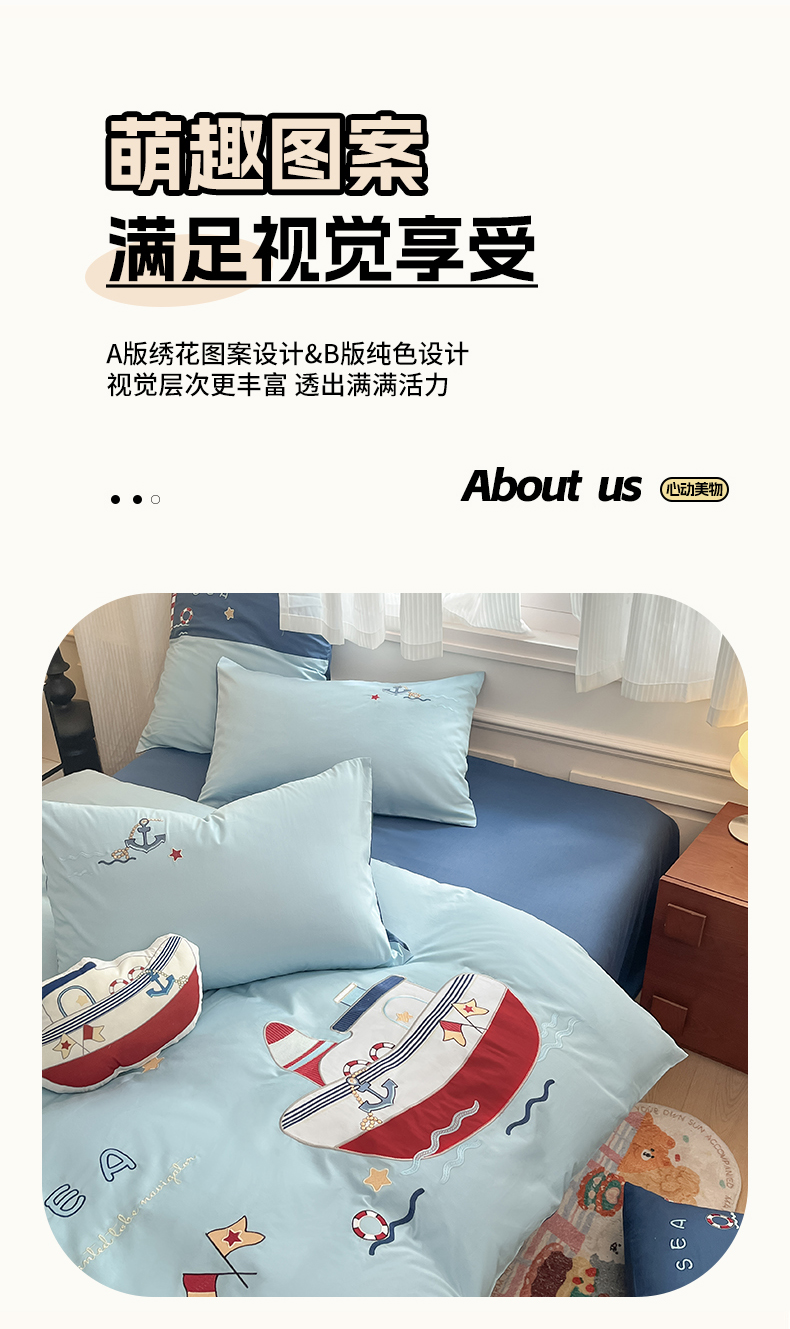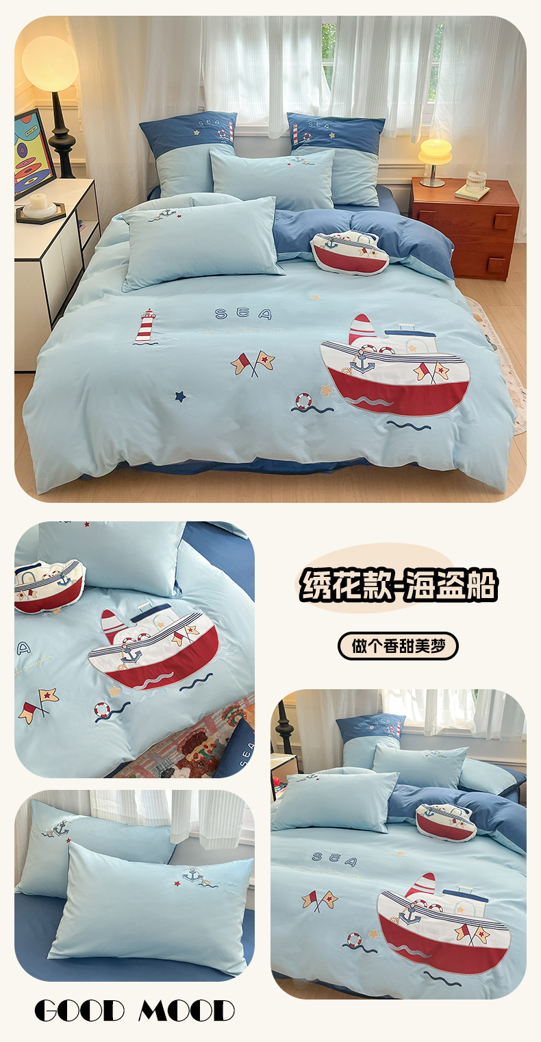 商品名称:博雅 2025新款全棉贴布绣卡通四件套 绣花款-海盗船