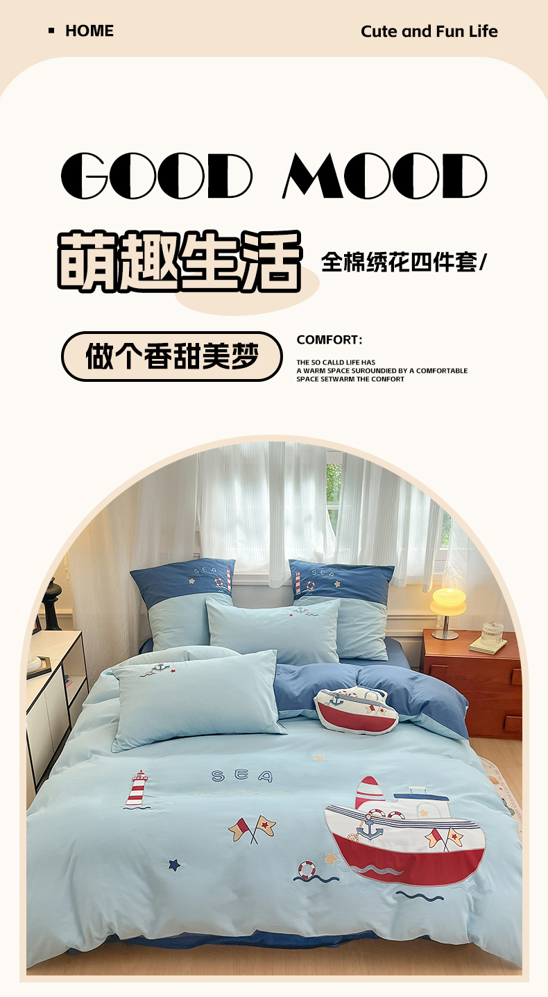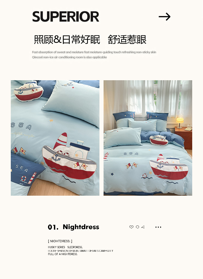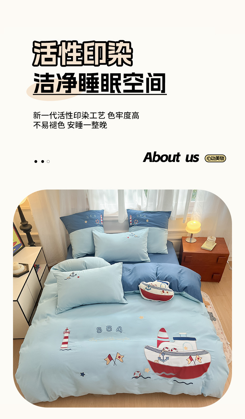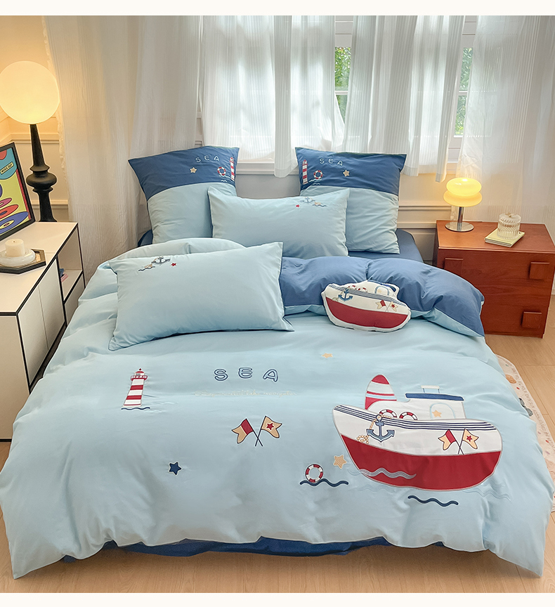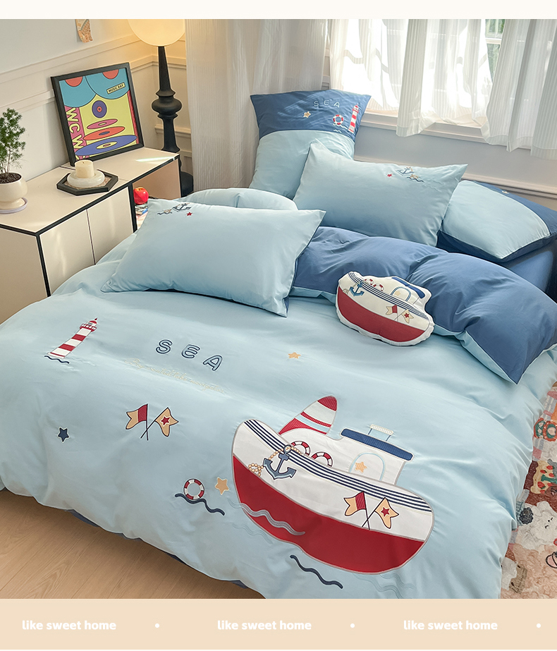 商品名称:博雅 2025新款全棉贴布绣卡通四件套 绣花款-海盗船