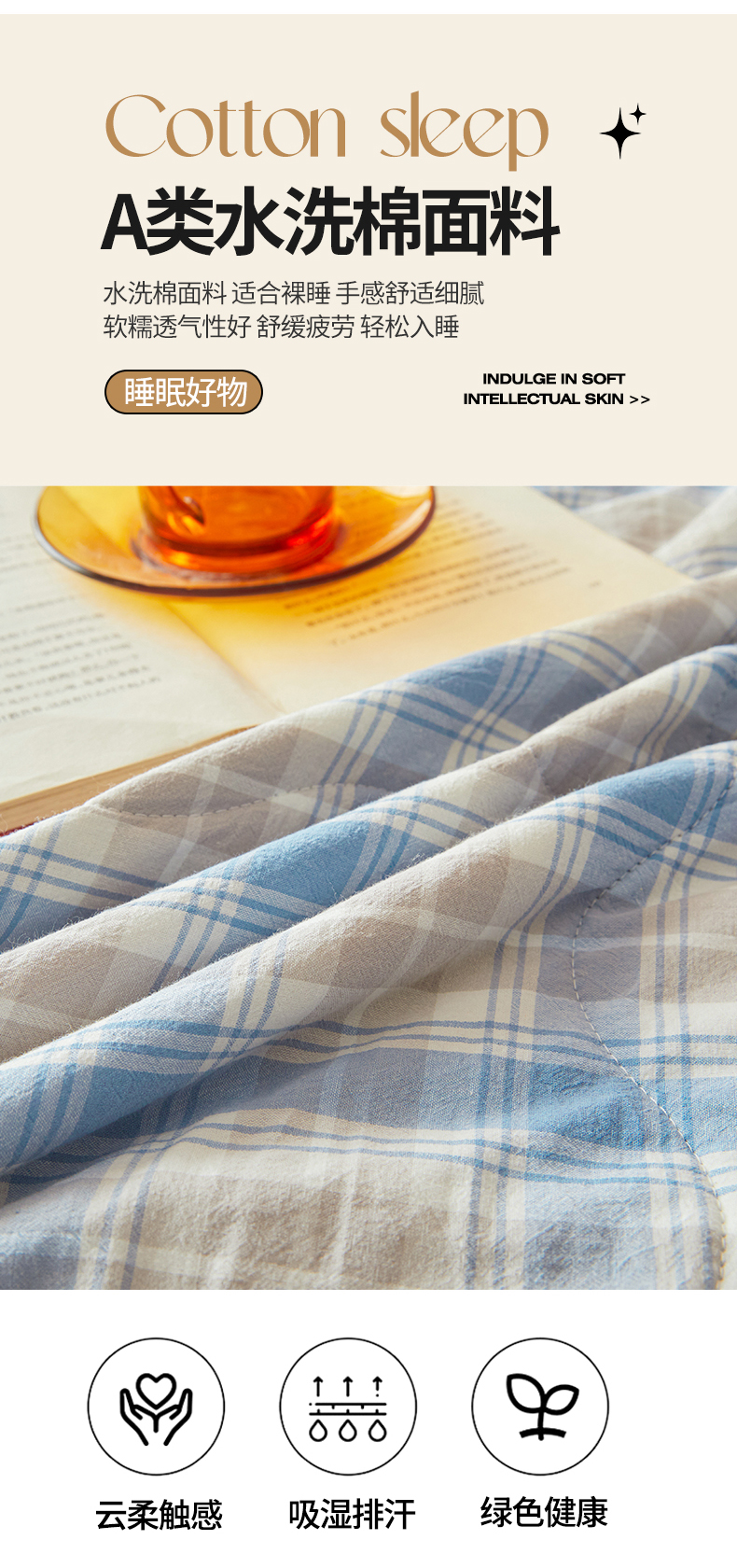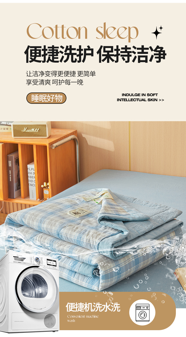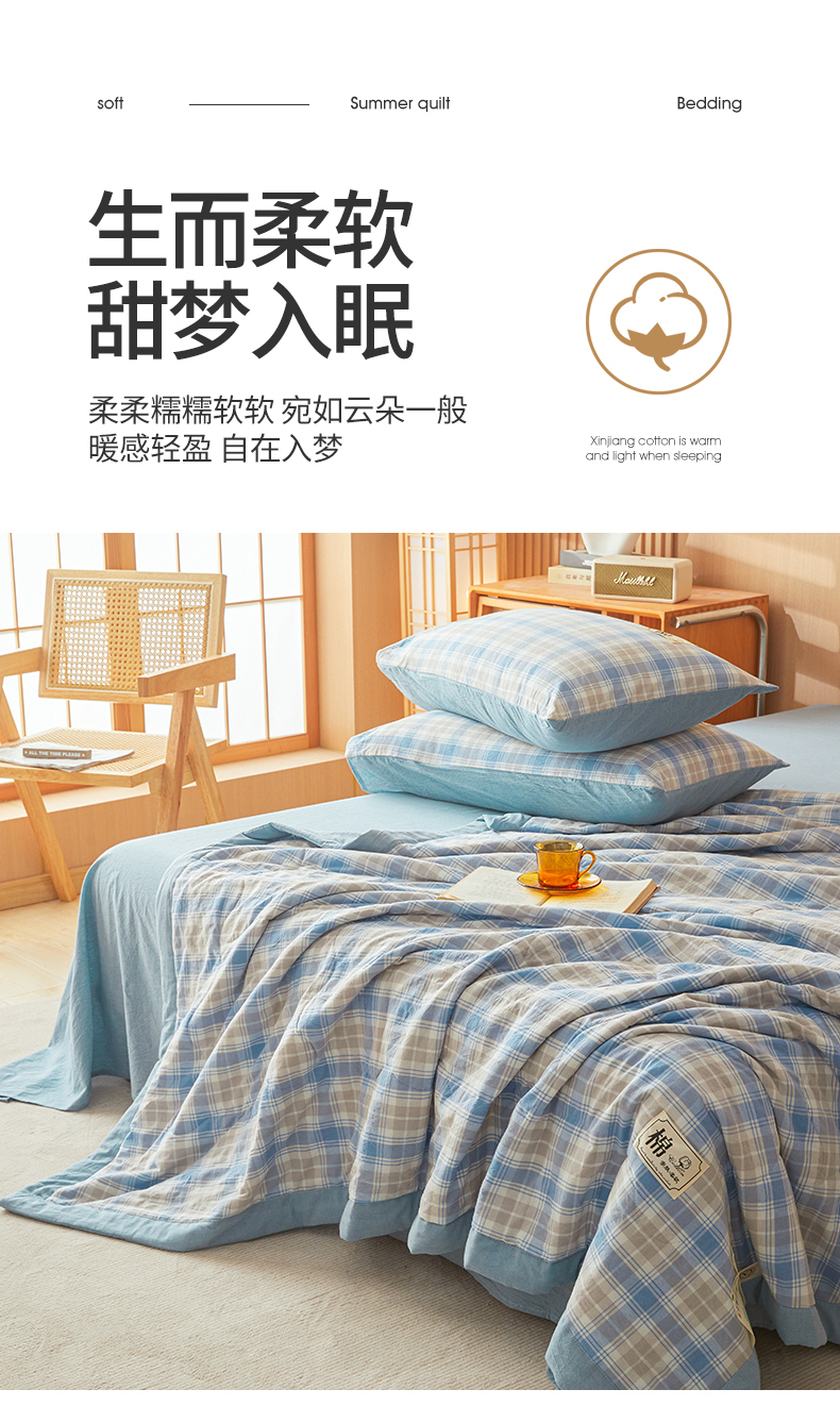招财星家纺 2025新款无印风新疆棉夏被夏凉被空调被可机洗直播可过质检 蓝黄格