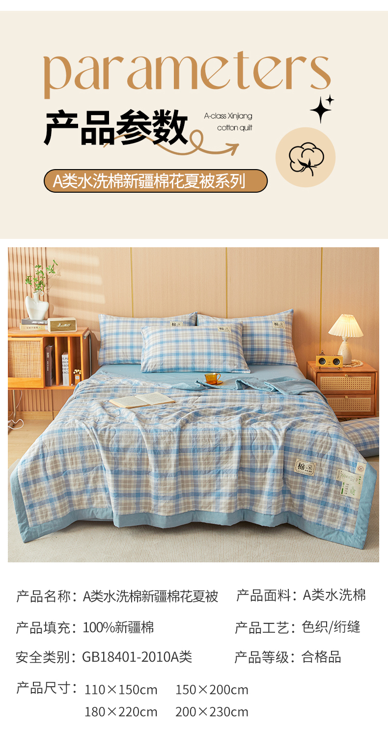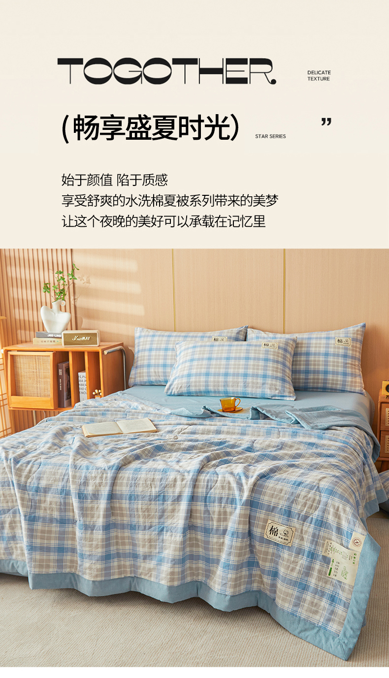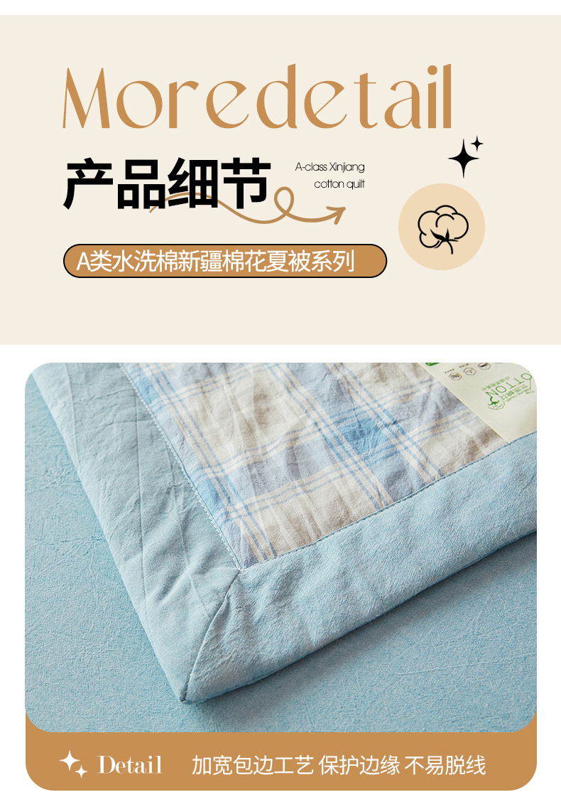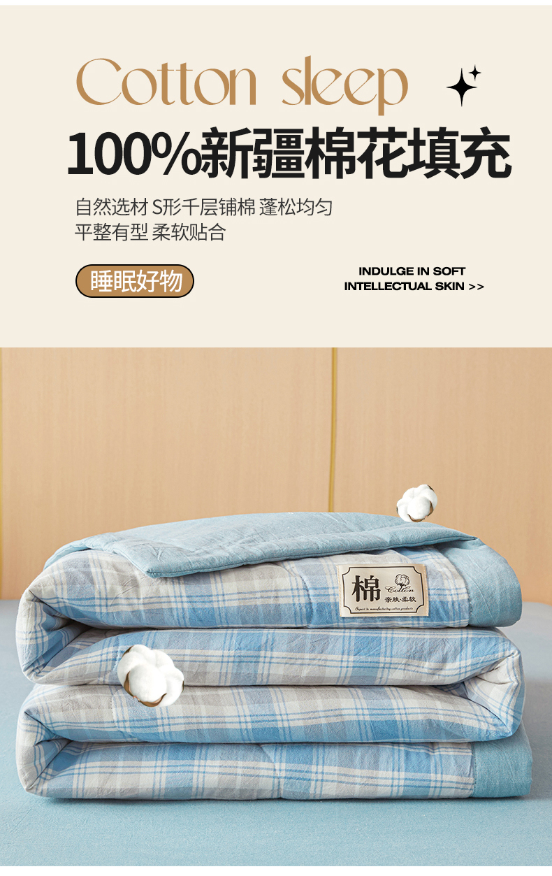 • 91家纺网 家纺一手货源 找家纺 招财星家纺 2025新款无印风新疆棉夏被夏凉被空调被可机洗直播可过质检 蓝黄格