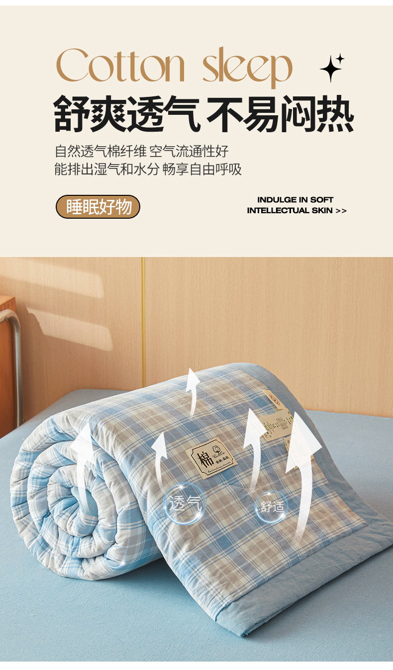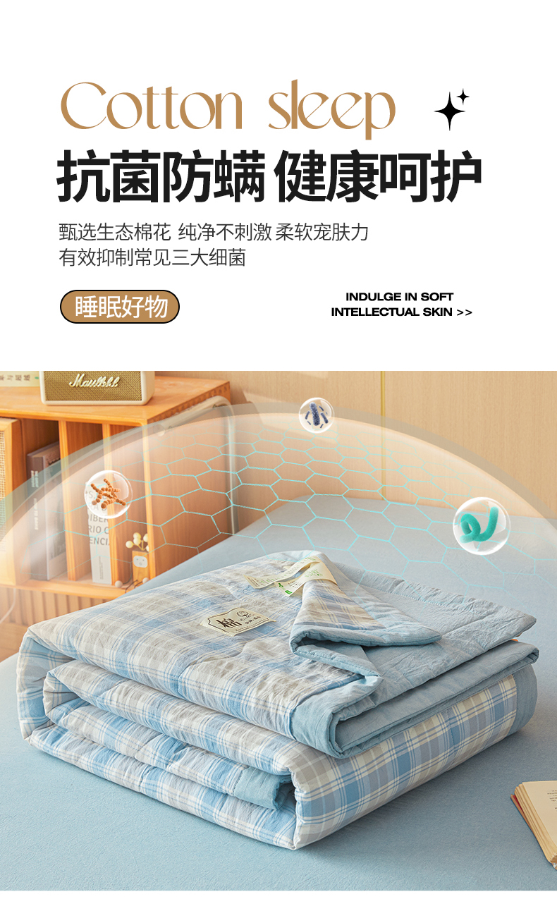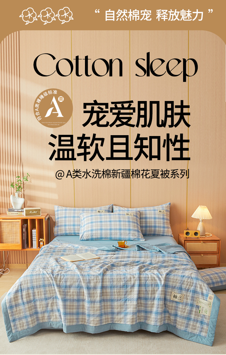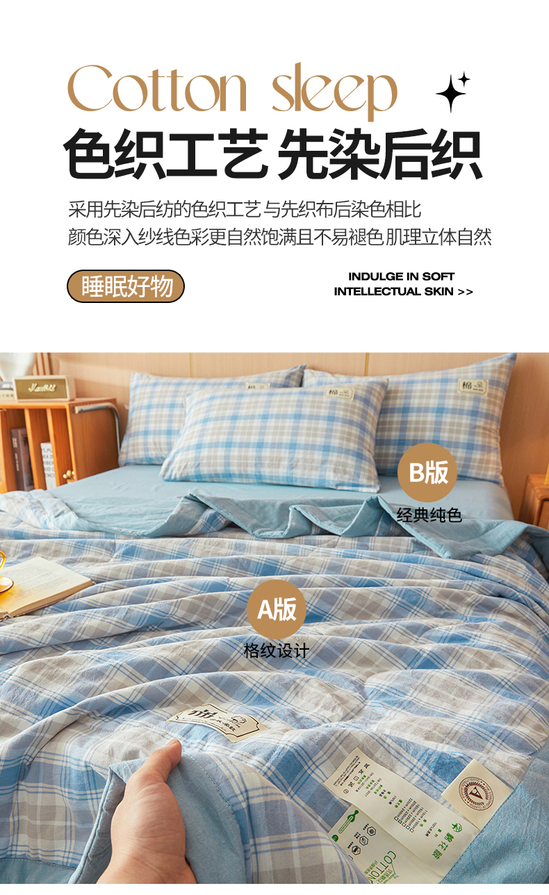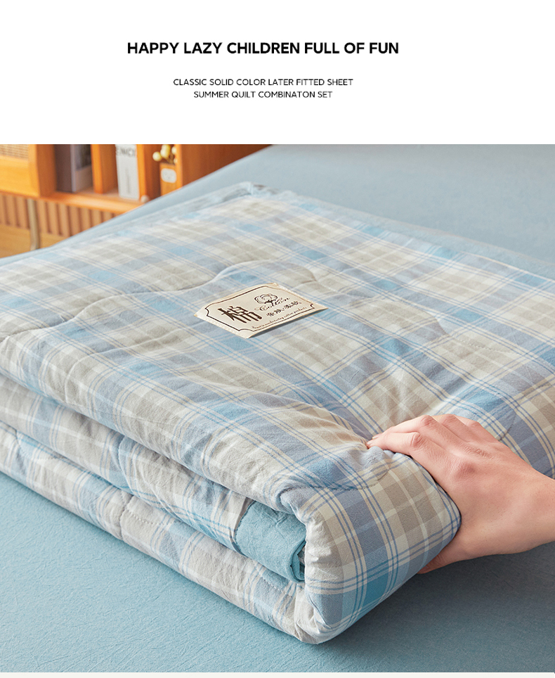 • 91家纺网 家纺一手货源 找家纺 招财星家纺 2025新款无印风新疆棉夏被夏凉被空调被可机洗直播可过质检 蓝黄格
