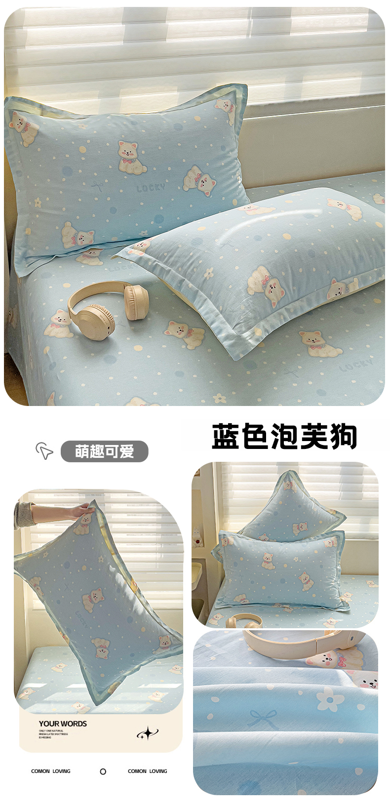 春雨家居 2025新款春夏卡通印花全棉单枕套 9.蓝色泡芙狗