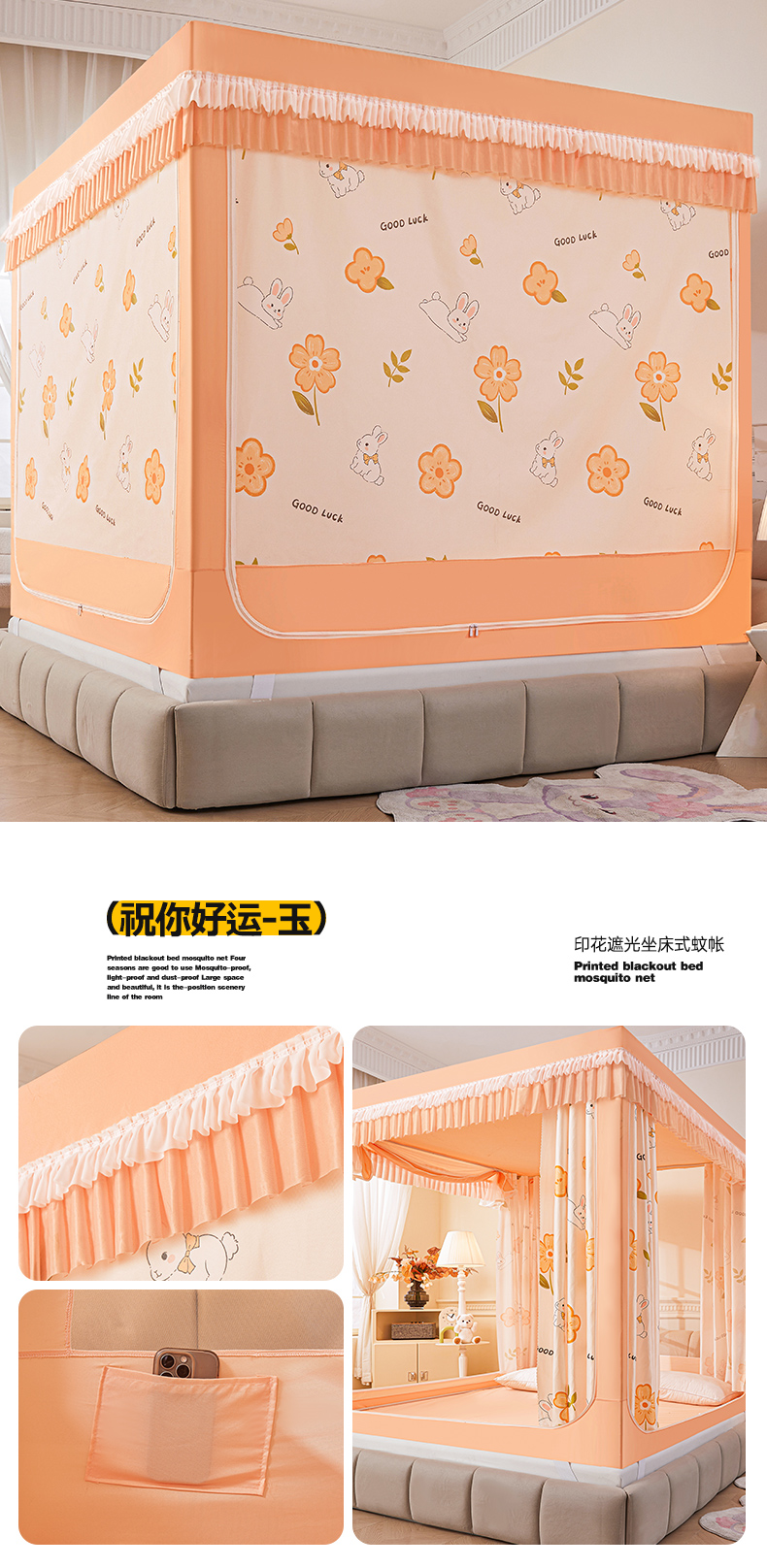 当前位置: 91家纺网 > 商品网购 > 床上用品 > 蚊帐 > 坐床式蚊帐 > 富莱星蚊帐 2025新款坐床可拆卸底遮光帘蚊帐 祝你好运-玉