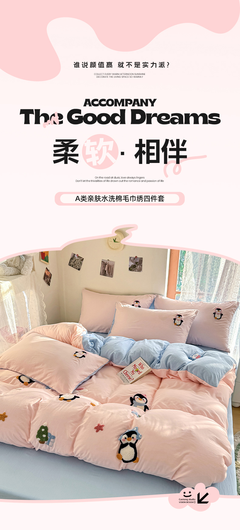 商品名称:(总)优卡迪家纺馆 2025新款A类亲肤水洗棉毛巾绣四件套(下载文件夹包含买家秀)