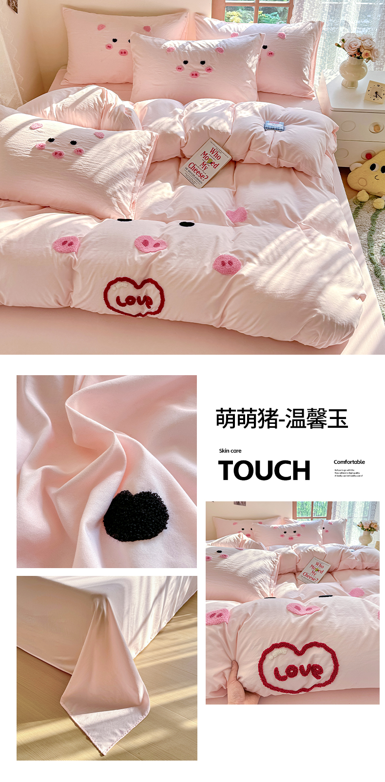 (总)优卡迪家纺馆 2024新款110克水洗棉甜心系列白花边四件套,甜心-奶油粉,甜心-奶油灰,甜心-奶油紫,甜心-奶油绿,甜心-奶油蓝,甜心-奶油黄