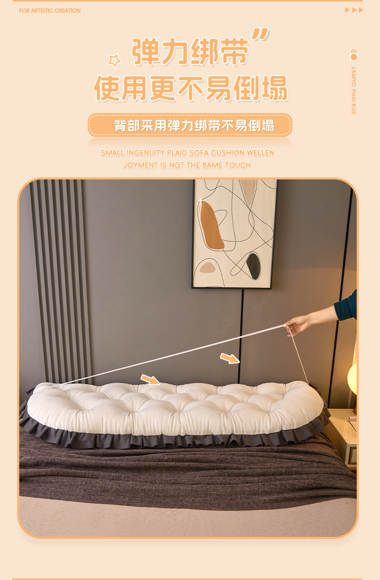 (总)碧尔家居 2025新款简约猫长条机械钉扣水洗棉床头靠枕,米黄,浅蓝,银灰