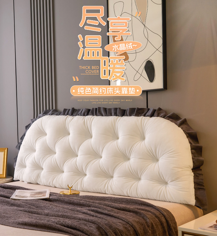 碧尔家居 2025新款阳光水晶绒床头靠背垫不塌陷卧室防撞床上靠垫宿舍护腰靠枕软包 乳白