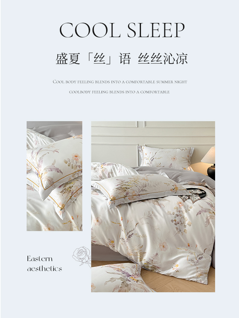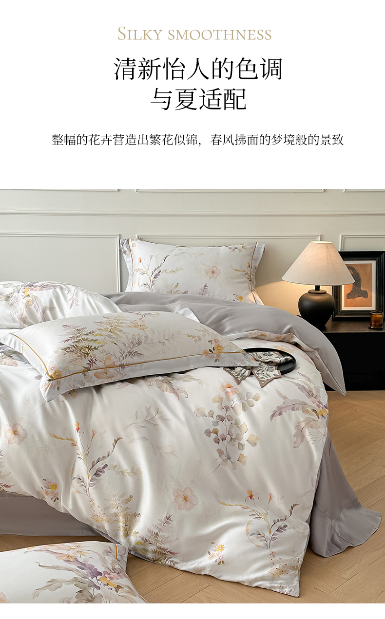 (总)启航家居 2025春夏新款莱赛尔天丝数码印花四件套,半纸叶灰,池禾韵兰,花园派对沙色,梦境之翼兰,梦境之翼绿,小雨录粉,烟花间粉,烟花间绿,樱岛春漫粉,云栖畔灰兰,栀花语粉,紫陌兰,紫陌紫