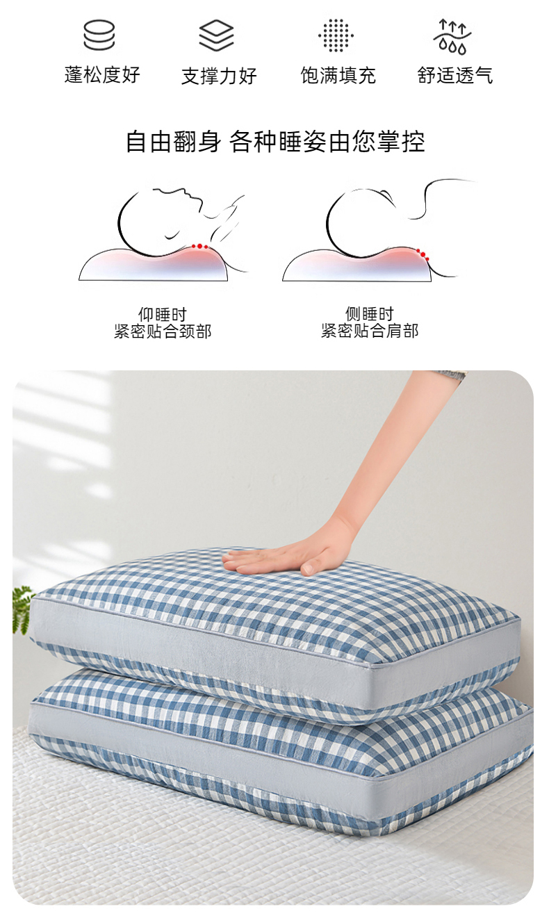 商品名称:纽乐家纺 2025新款水洗棉全荞麦枕枕头枕芯 黑格子35*55