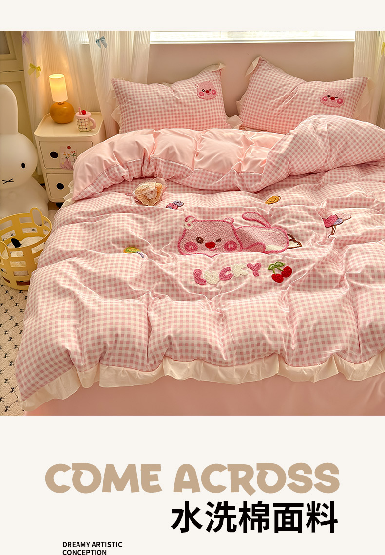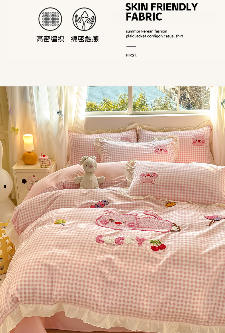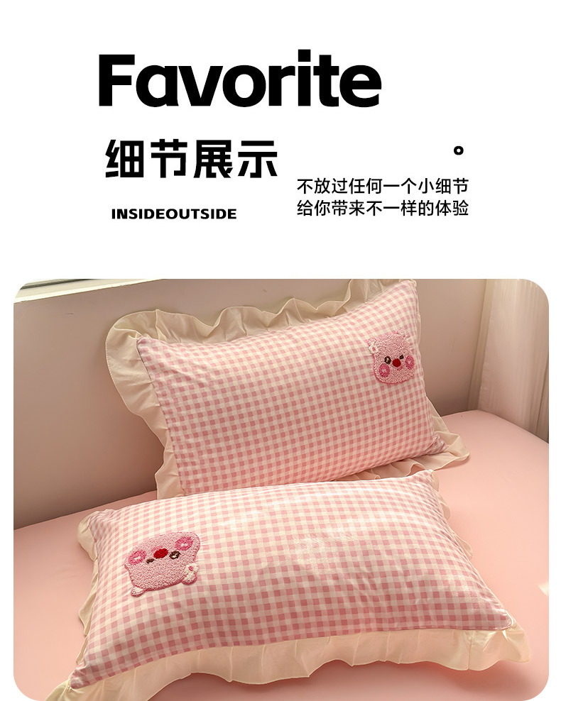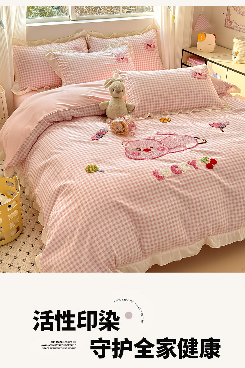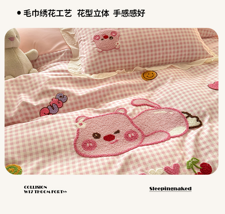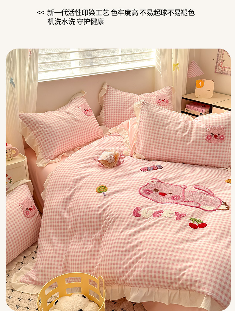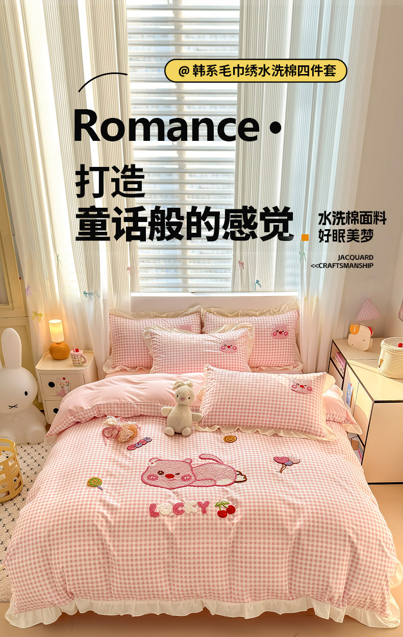 当前位置: 91家纺网 > 商品网购 > 床品套件 > 四件套 > 水洗棉四件套 > 易禾家纺 2025新品韩系小清新水洗棉毛巾绣露比系列四件套(专版花型) 露比-粉格