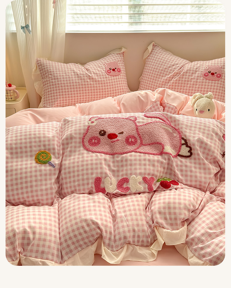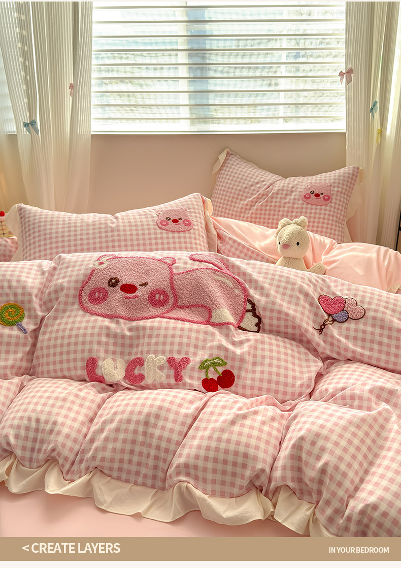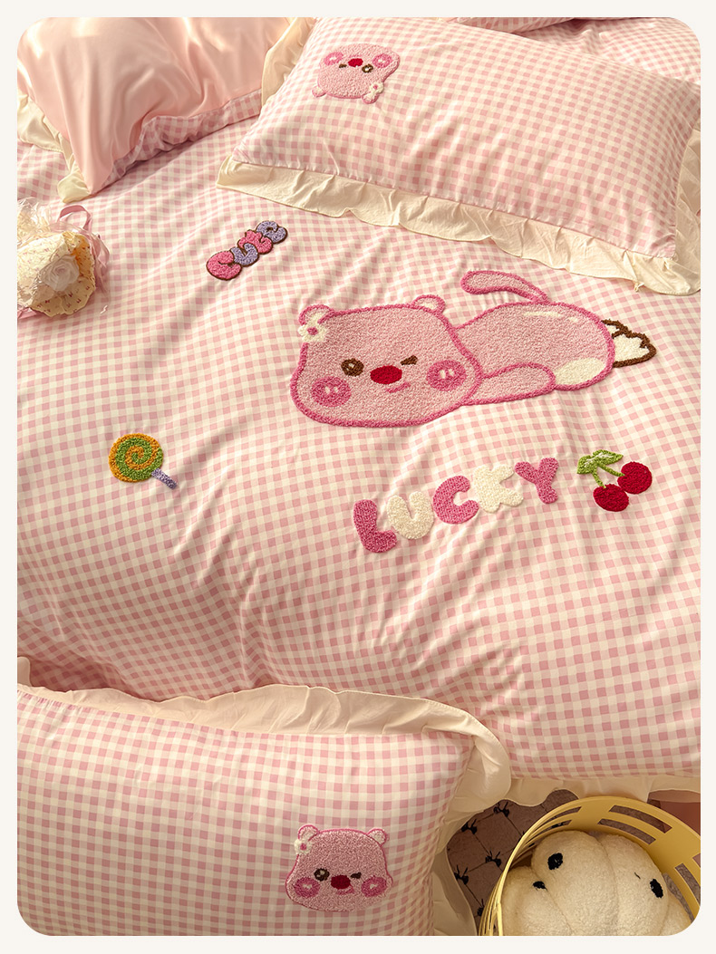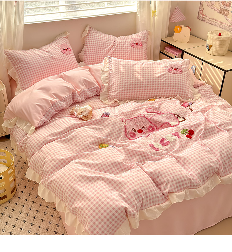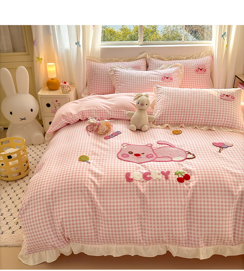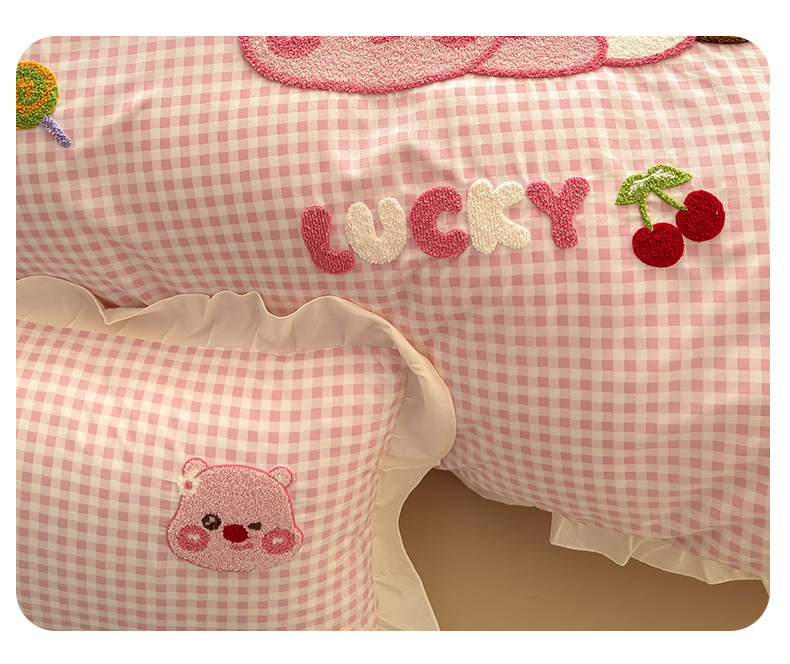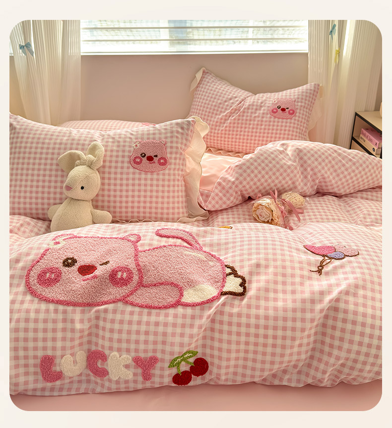 当前位置: 91家纺网 > 商品网购 > 床品套件 > 四件套 > 水洗棉四件套 > 易禾家纺 2025新品韩系小清新水洗棉毛巾绣露比系列四件套(专版花型) 露比-粉格
