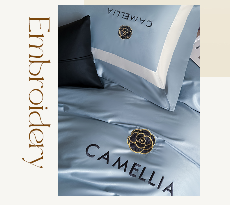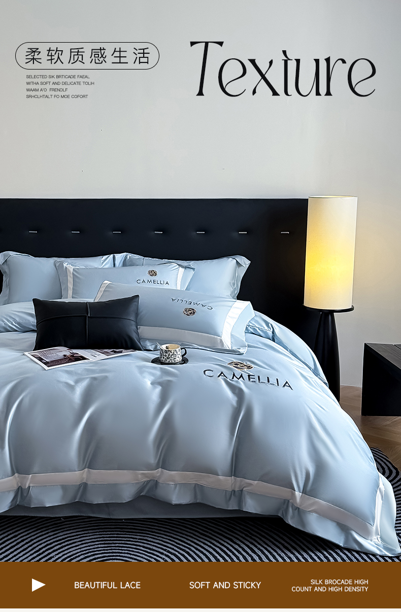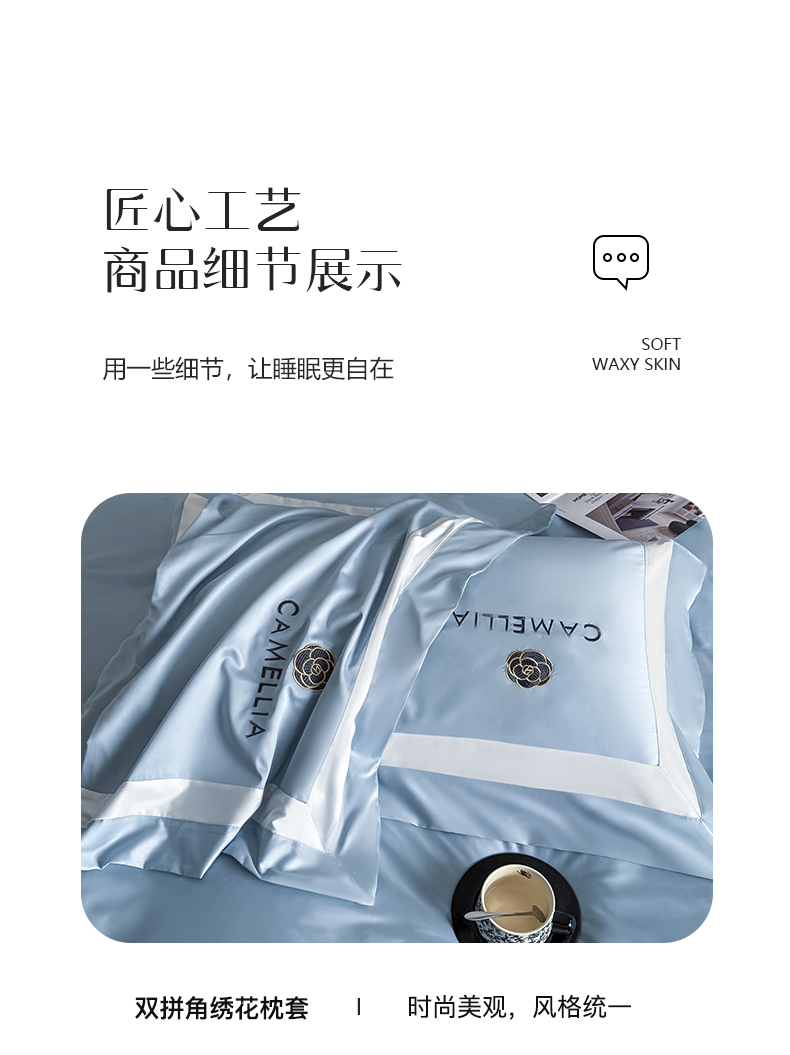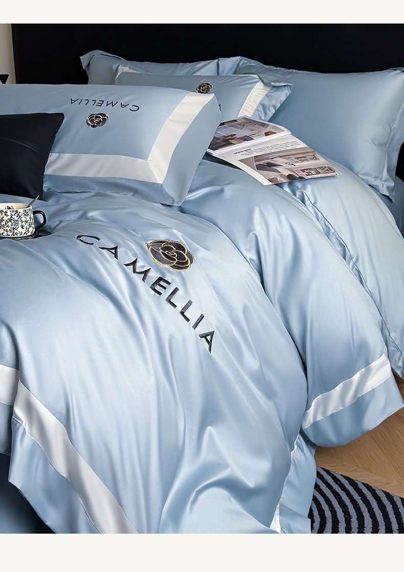 商品名称:水云缦 2025新款轻奢全棉双拼角绣花四件套-米兰系列 米兰-繁星蓝