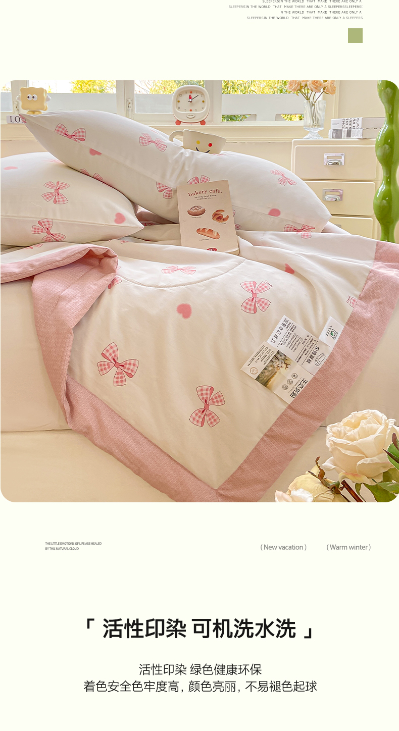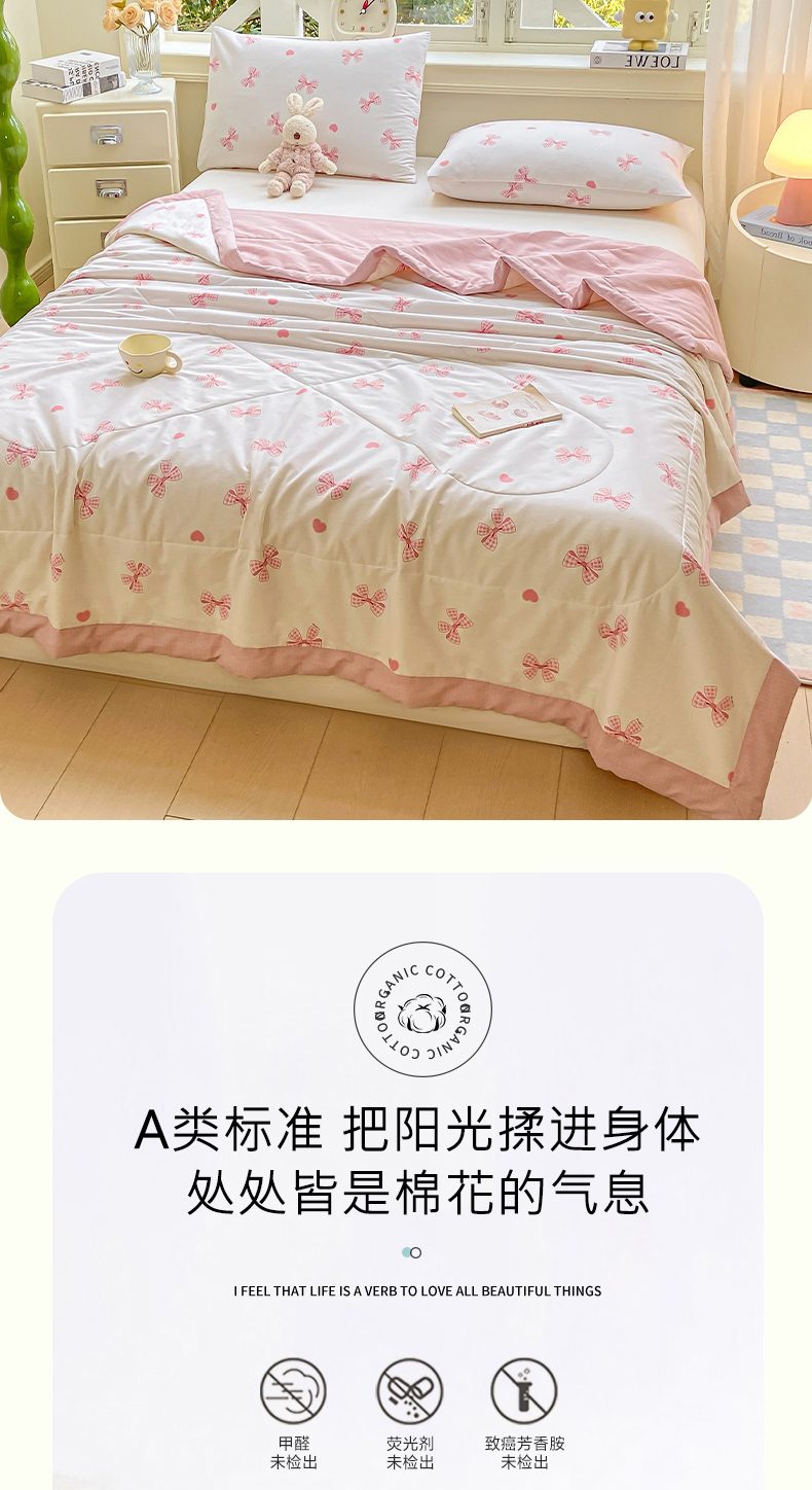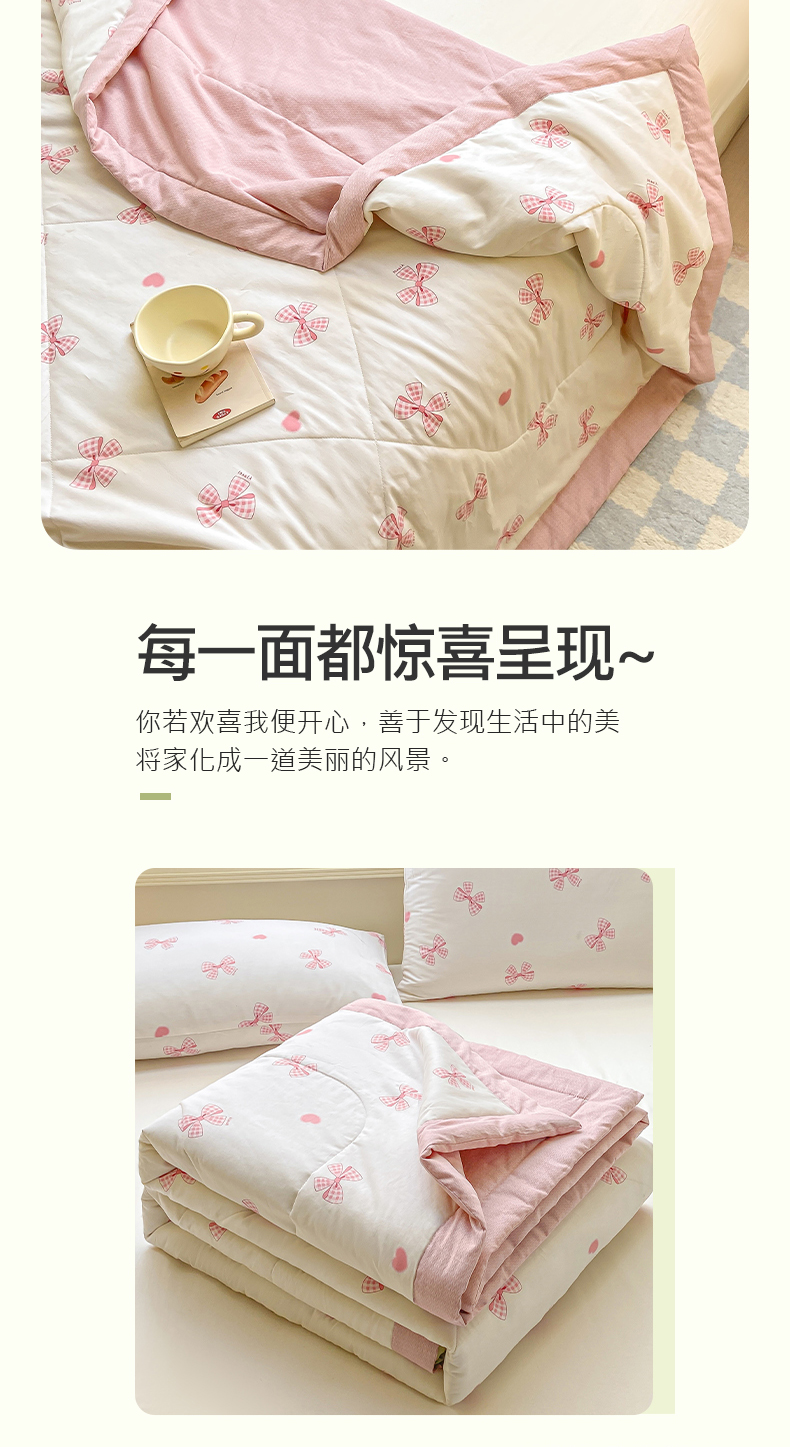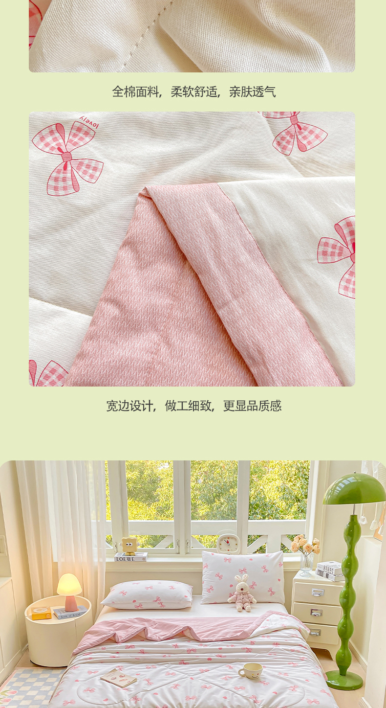 商品名称:憨豆家纺 2025新款双面全棉夏被可机洗小清新纯棉夏被薄被芯空调被子夏凉被 蝴蝶结