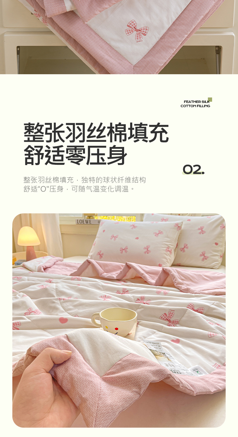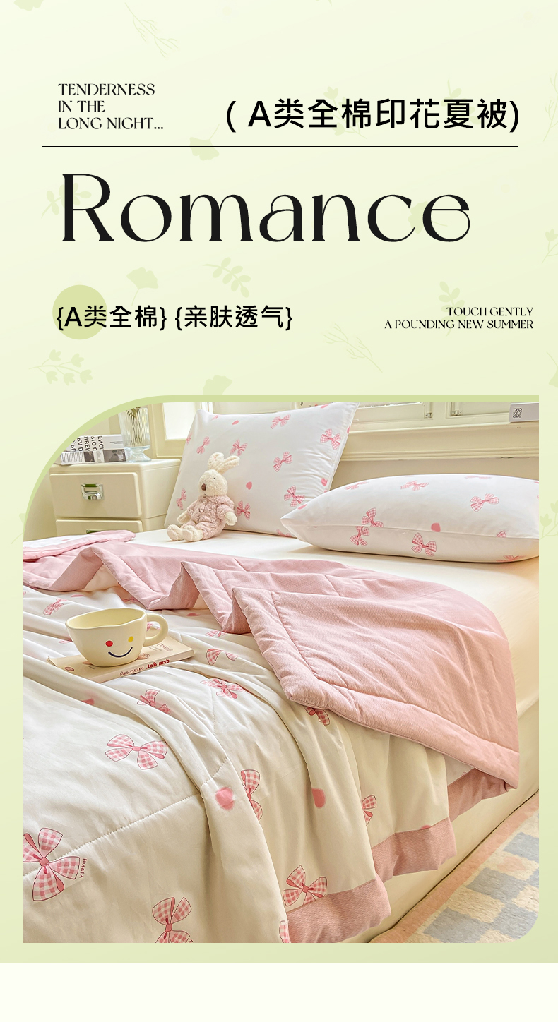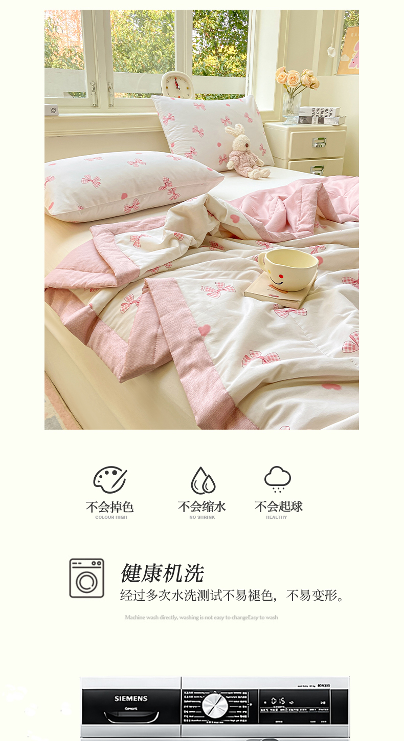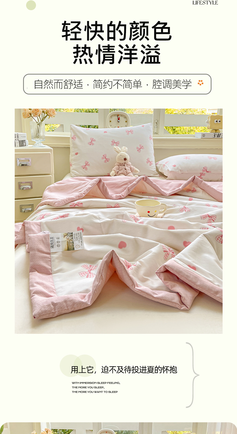 商品名称:憨豆家纺 2025新款双面全棉夏被可机洗小清新纯棉夏被薄被芯空调被子夏凉被 蝴蝶结
