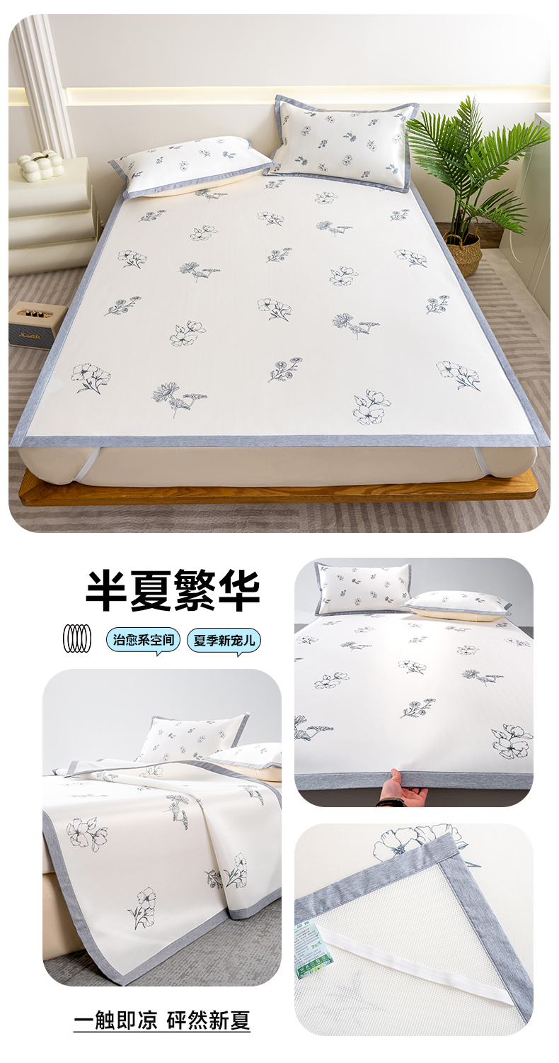 商品名称:邵依家纺 2025新款数码印花烫光冰丝席凉席子藤席场景二 半夏繁华