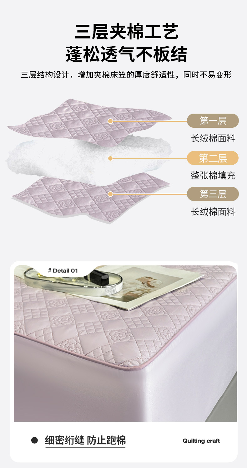 (总)2025A类母婴级长绒棉夹棉床笠三件套纯棉全棉加厚席梦思床罩床套四季款保护罩,茶绿,黛紫,慕蓝,奶玉,颜粉