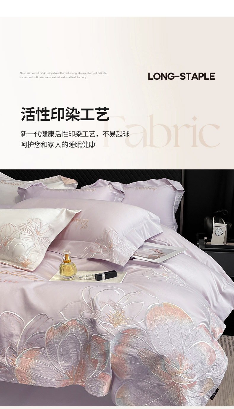 (总) 2025春夏长绒棉四件套纯棉全棉轻奢风床单被套重工刺绣床上用品,芊羽梦-白粉,芊羽梦-茶绿,芊羽梦-黛紫,芊羽梦-慕蓝,芊羽梦-颜粉