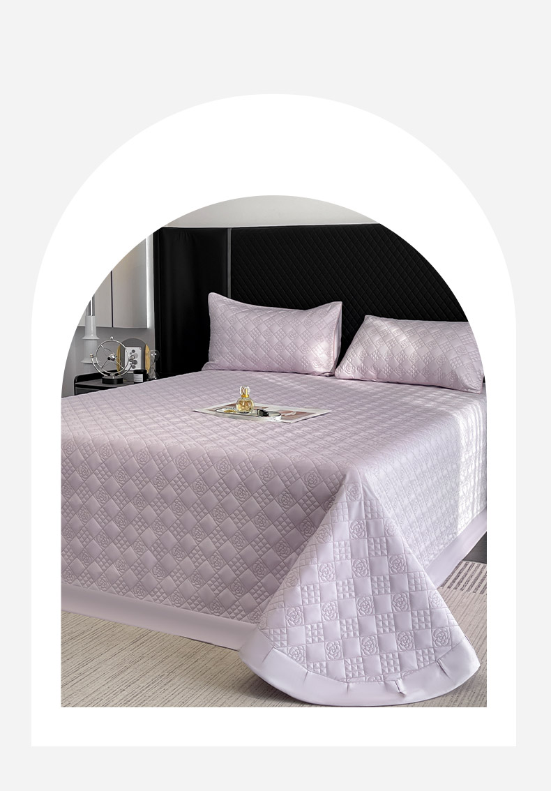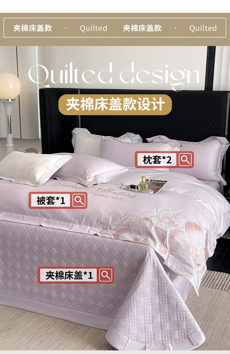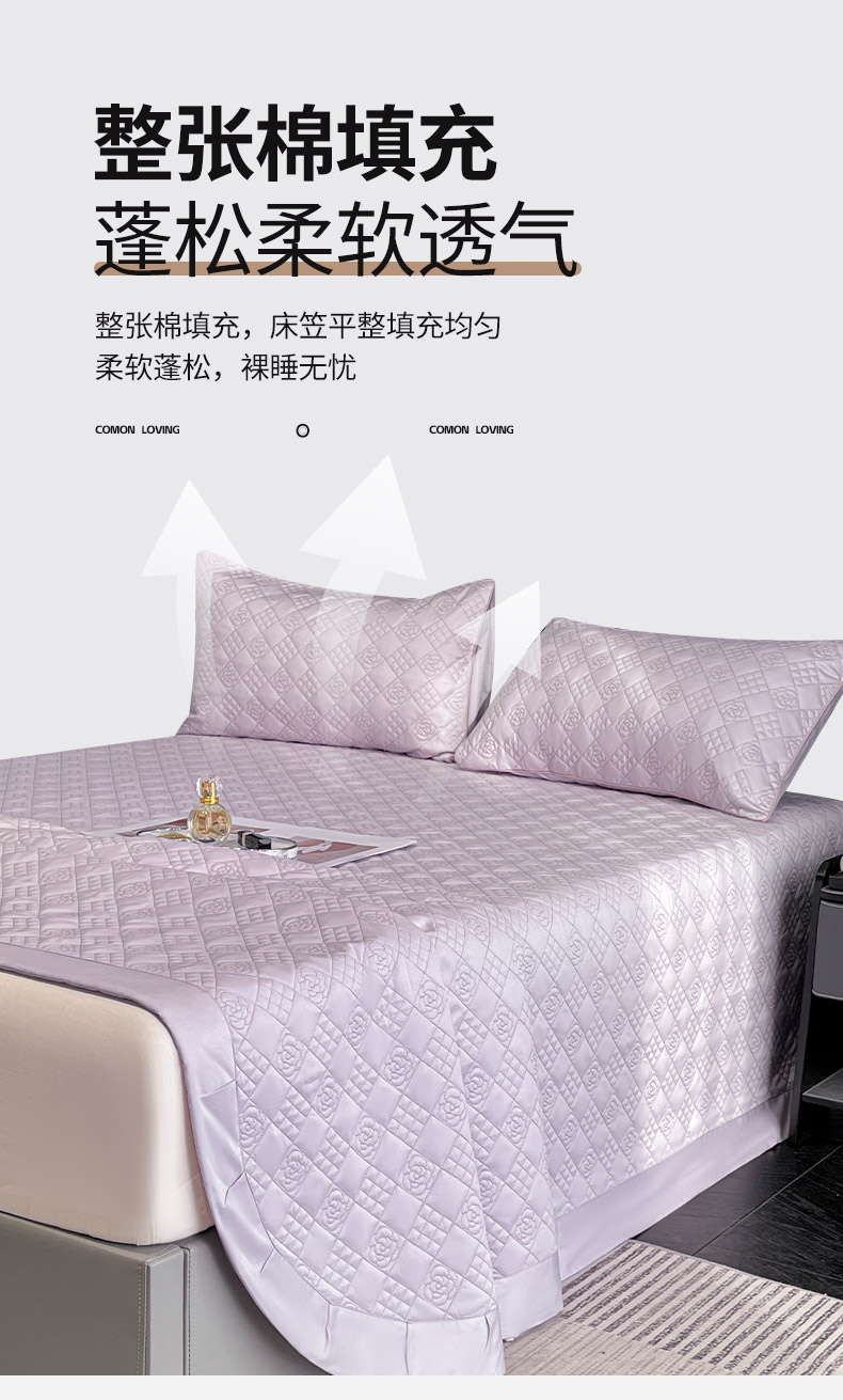 (总)2025新款A类100支长绒棉夹棉床盖三件套全棉纯棉加厚绗绣床单四季款床上用品,茶绿,黛紫,慕蓝,奶玉,颜粉