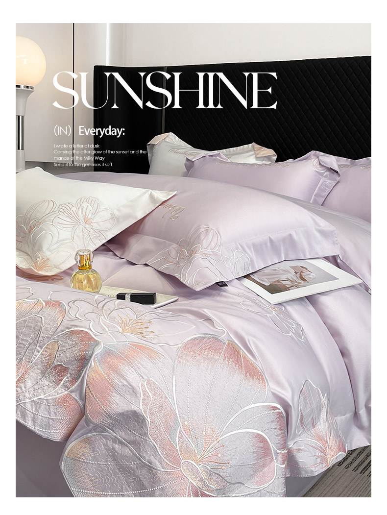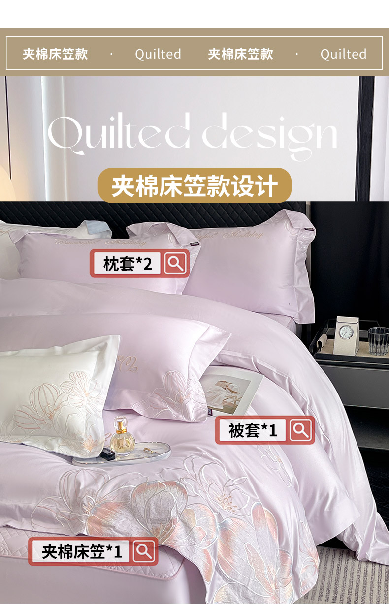 2025新款轻奢风A类100支长绒棉四件套全棉纯棉重工刺绣床单床笠夹棉床笠床盖款高端床上用品-星慕 黛紫