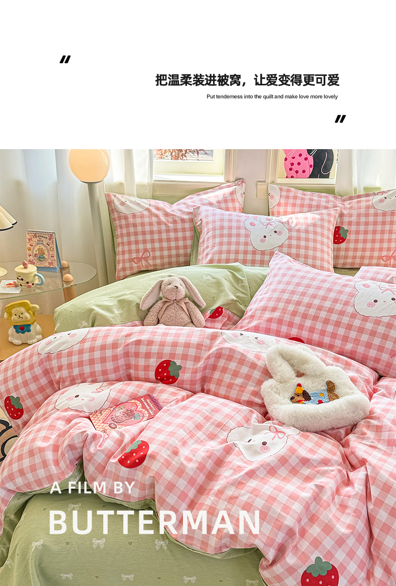 (总)简宜家居(朝初家纺) 2025新款12868全棉兔与花笺系列四件套,海星贝贝,兔与花笺,豹纹-粉,豹纹-咖,粉红可爱兔,粉色猫,粉条喵团,格纹宠物,火箭星空,蓝格欢乐,蓝花兔,萌友聚会,木马蓝格,奶蓝熊语,甜心萌犬,原野草木