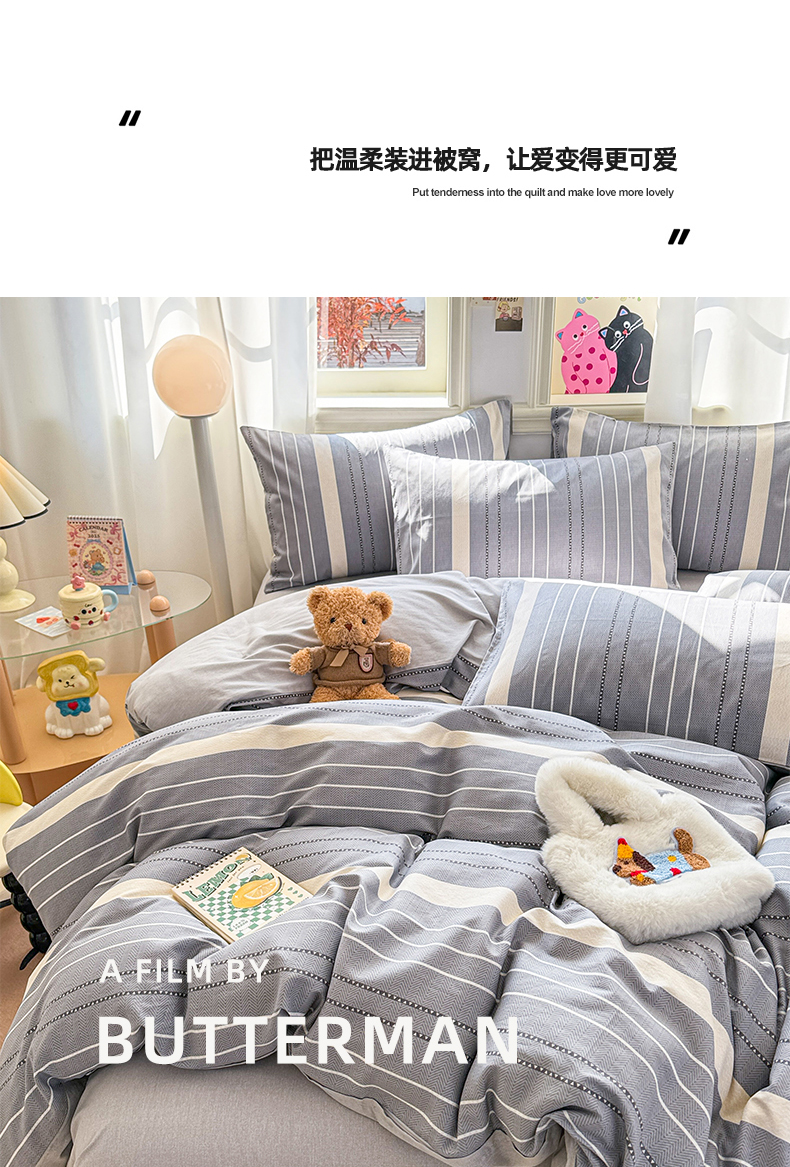 简宜家居(朝初家纺) 2025新款40支13070纯棉四件套 条纹艺术